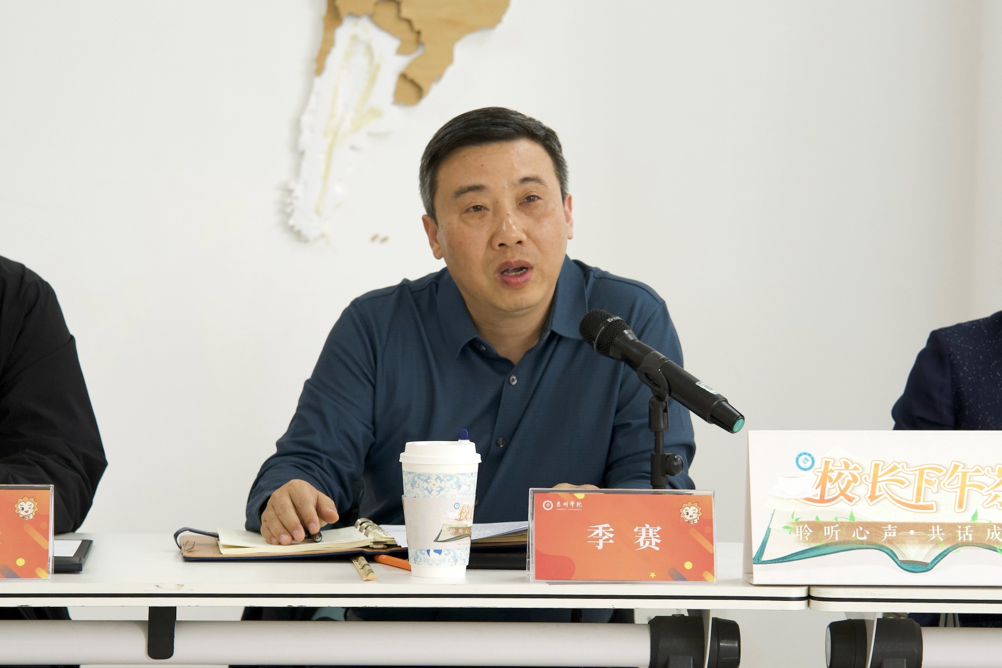 季赛在座谈会上与同学们交流并作总结讲话。他表示,通过今天的座谈会,充分感受到了同学们对学校发展的真切期盼,看到了泰院学子共建美好泰院的主人翁姿态。他指出,“我为同学办实事”不是空洞的口号,而是实实在在的责任与承诺,各部门要进一步提高对“我为同学办实事”项目的认识,把落实“我为同学办实事”作为落实中央八项规定精神,密切联系群众、改进工作作风的具体举措;要认真调查研究同学们提出的问题建议,努力转化为本部门“我为同学办实事”的项目,能马上解决的问题要做到立行立改,需逐步改善的问题要作好解释说明并积极推进。