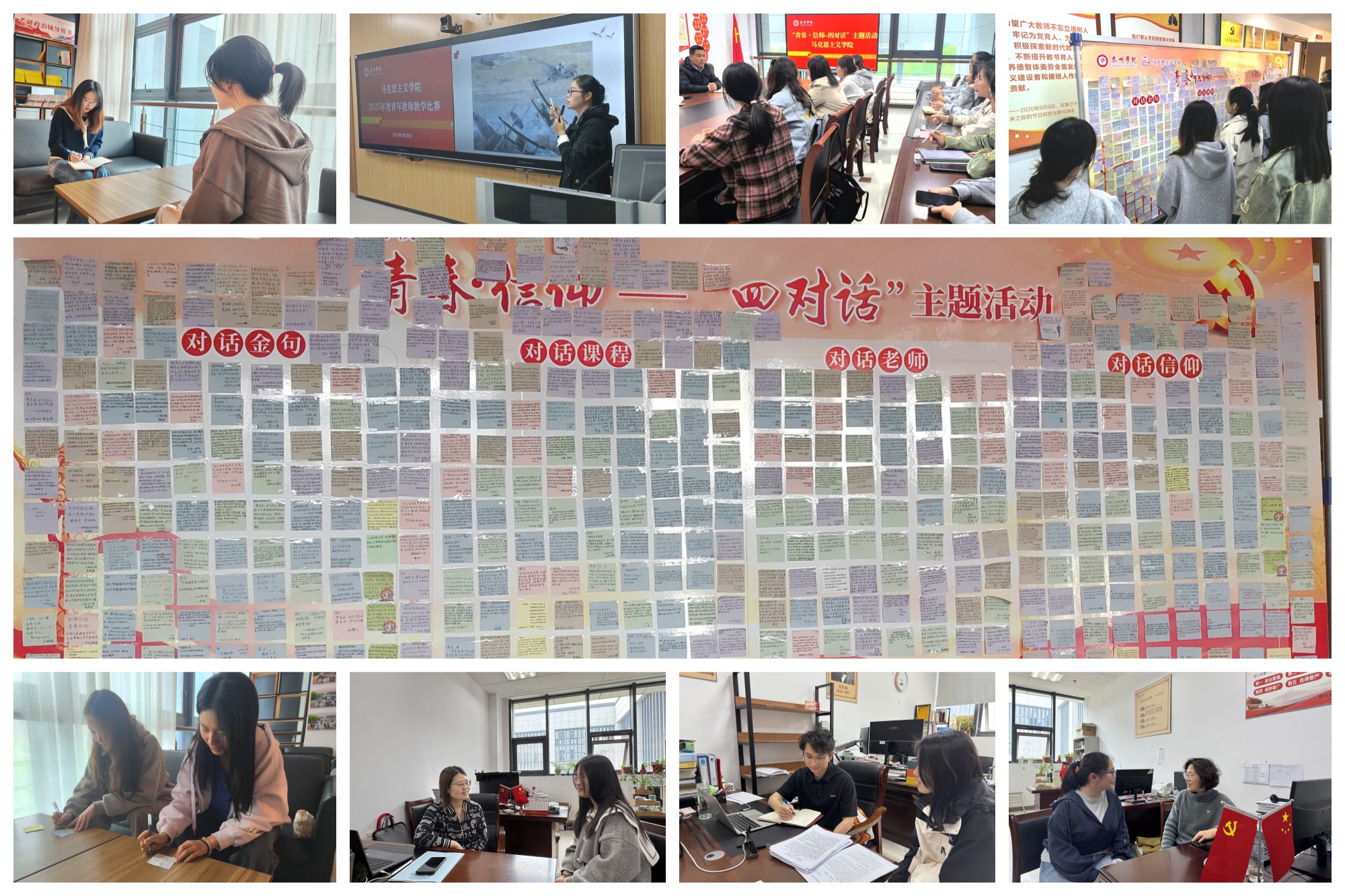 为深入学习贯彻习近平新时代中国特色社会主义思想,推动学生成长需求与思政教育深度融合,3月1日至4月20日,马克思主义学院党总支组织开展了“四对话”主题活动。活动以“对话金句、对话课程、对话老师、对话信仰”为主线,通过多层次、多维度的互动交流,构建起师生共学共研、理论与实践互促的思政教育新格局。