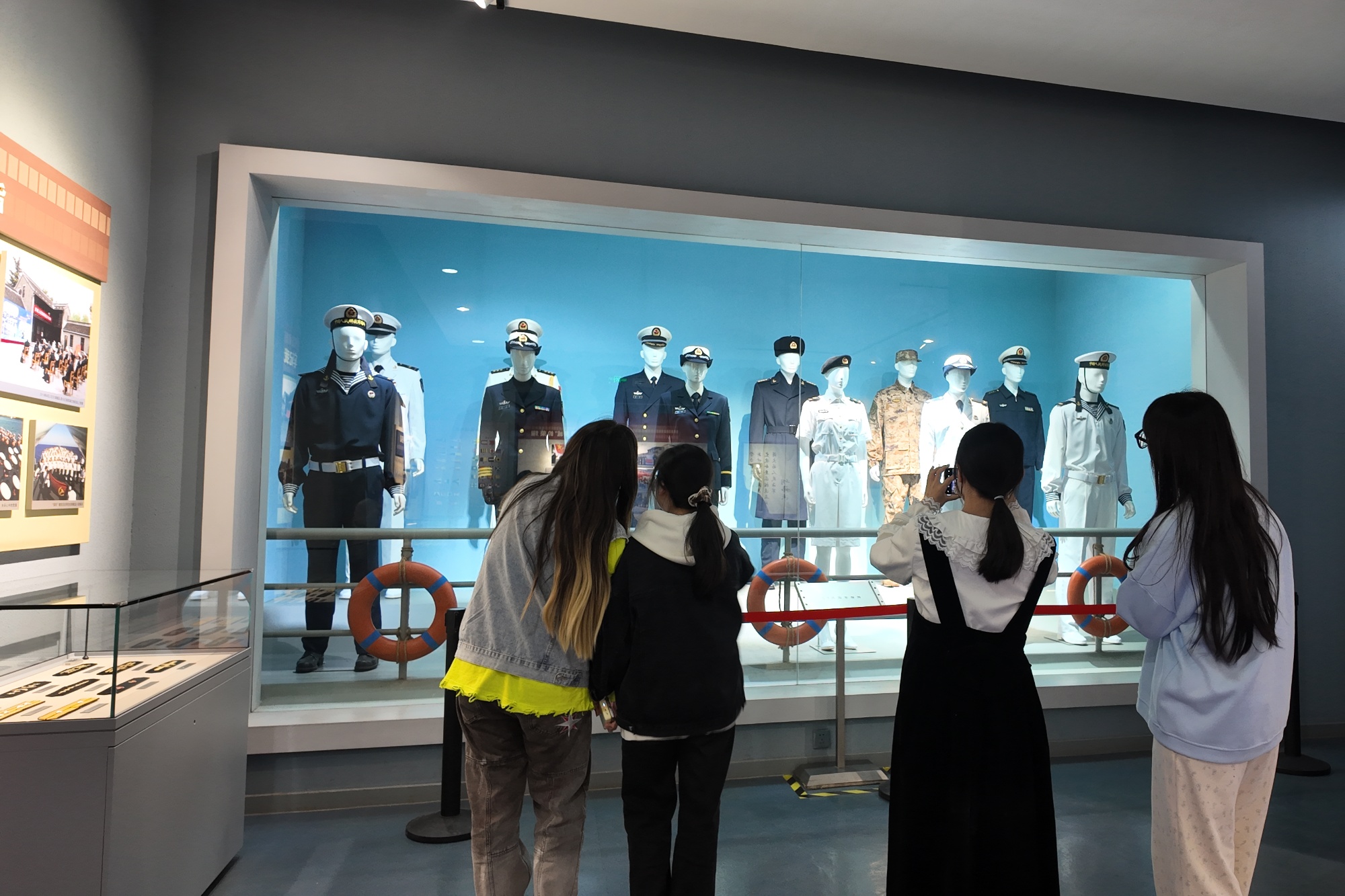 纪念馆内,红色文化宣讲员周诗琦慷慨讲述:“自1949年4月23日华东军区海军在江苏泰州白马庙宣告成立以来,人民海军从无到有、由弱变强,走过了不平凡的壮丽航程。从‘小艇打大舰’的英勇无畏,到航母编队远洋护航的威武雄壮,中国海军以钢铁之躯,捍卫国家主权和海洋权益,书写了一部波澜壮阔的史诗。”
