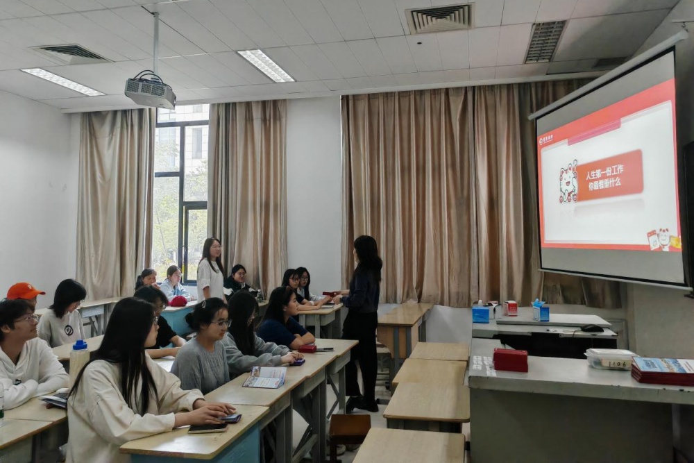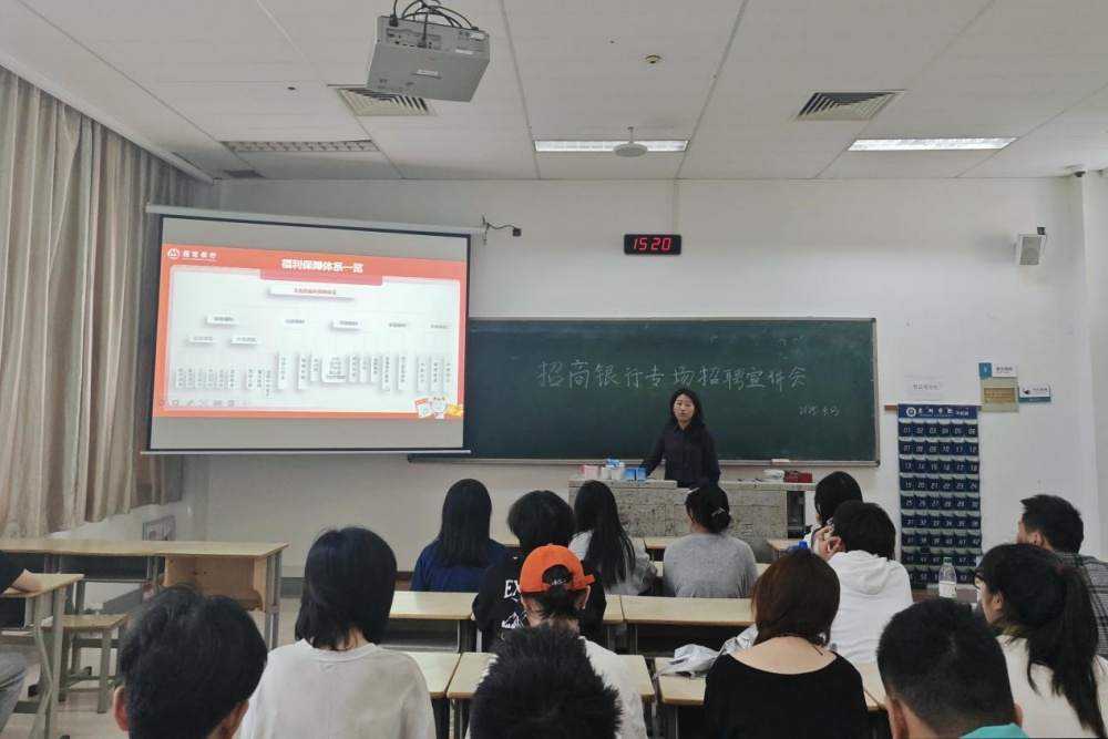 宣讲会以“人生第一份工作,你最看重什么问题”为切入点,招商银行泰州分行人事陈罕妃系统介绍了金融行业的发展前景、招聘薪资及职业成长路径,重点阐述了“服务标准因您而变”的企业理念,展示了银行多元的招聘岗位和完善的晋升体系,包括管培生、客户经理、数据分析等多个方向。宣讲会现场,同学们就职业发展、岗位要求等问题与企业代表进行了深入交流。
