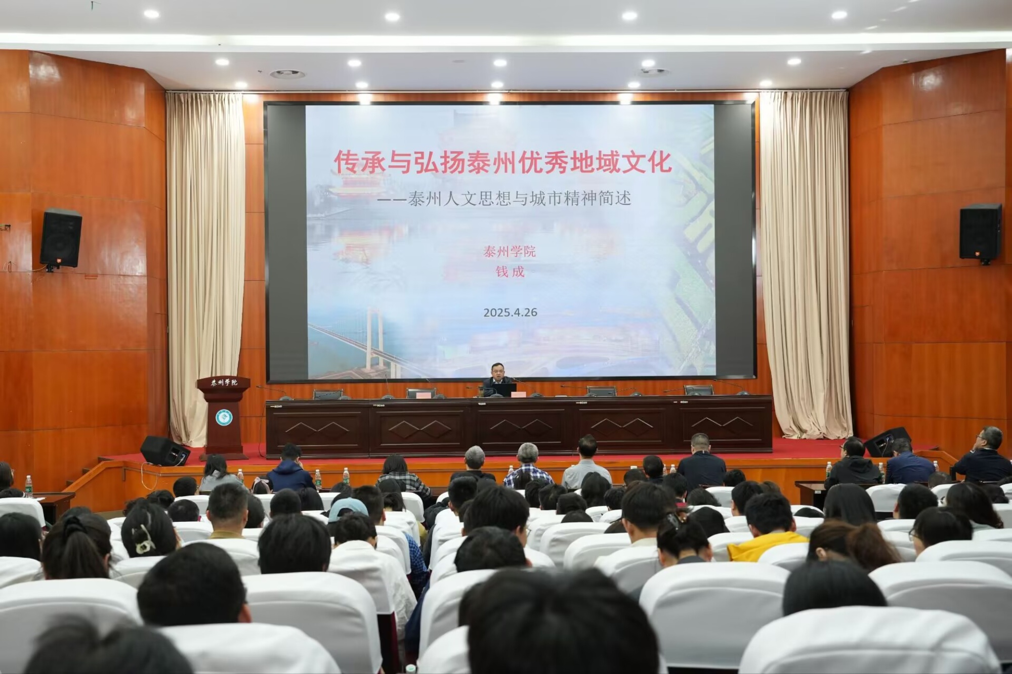 开班仪式结束后,bat365人文学院院长钱成教授作了题为《传承与弘扬泰州优秀地域文化——泰州人文思想与城市精神简述》的讲座。当天下午,首批参训学员还到校教师职业技能训练中心进行了板书和教师语言两项诊断性测试。