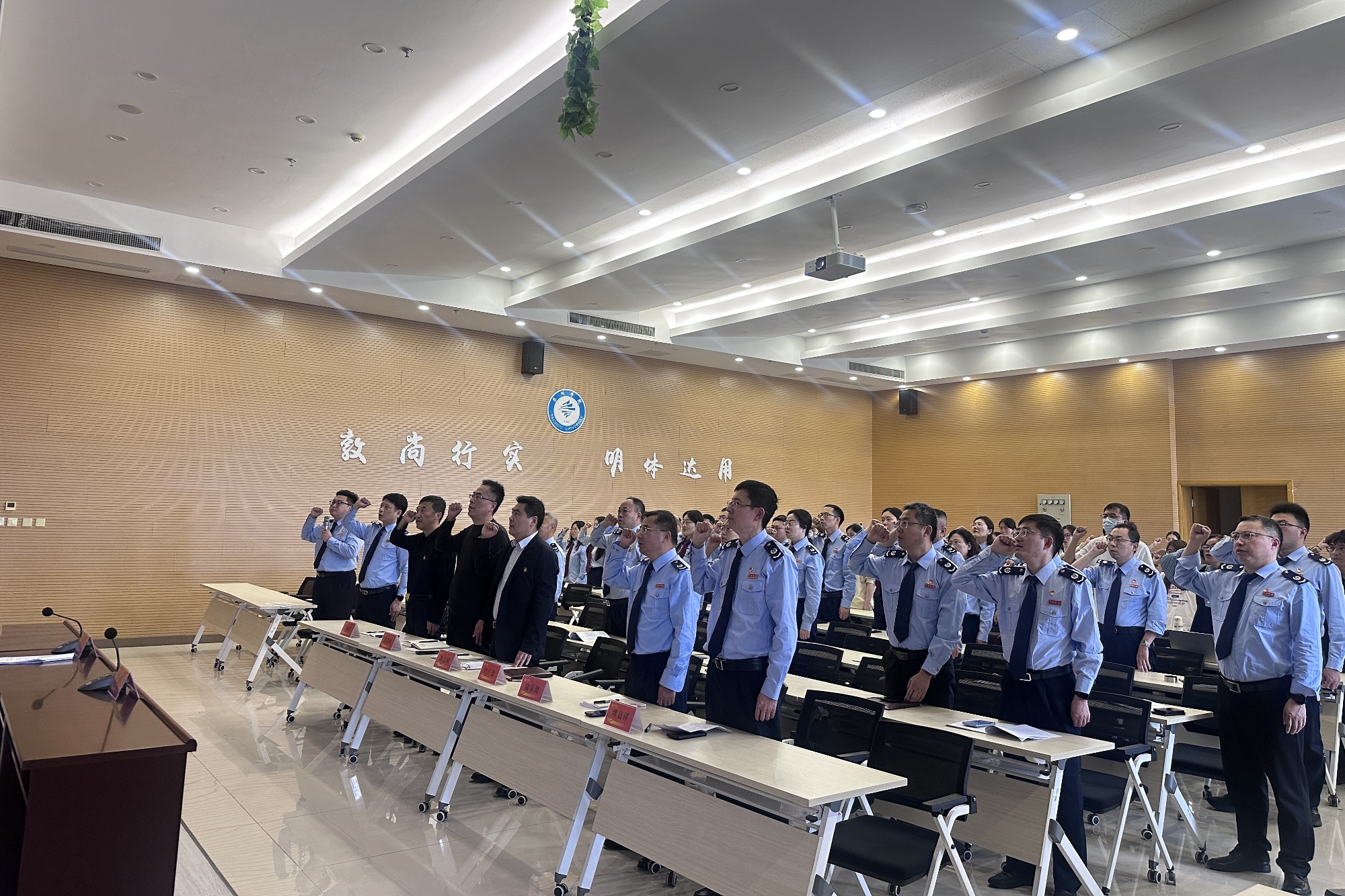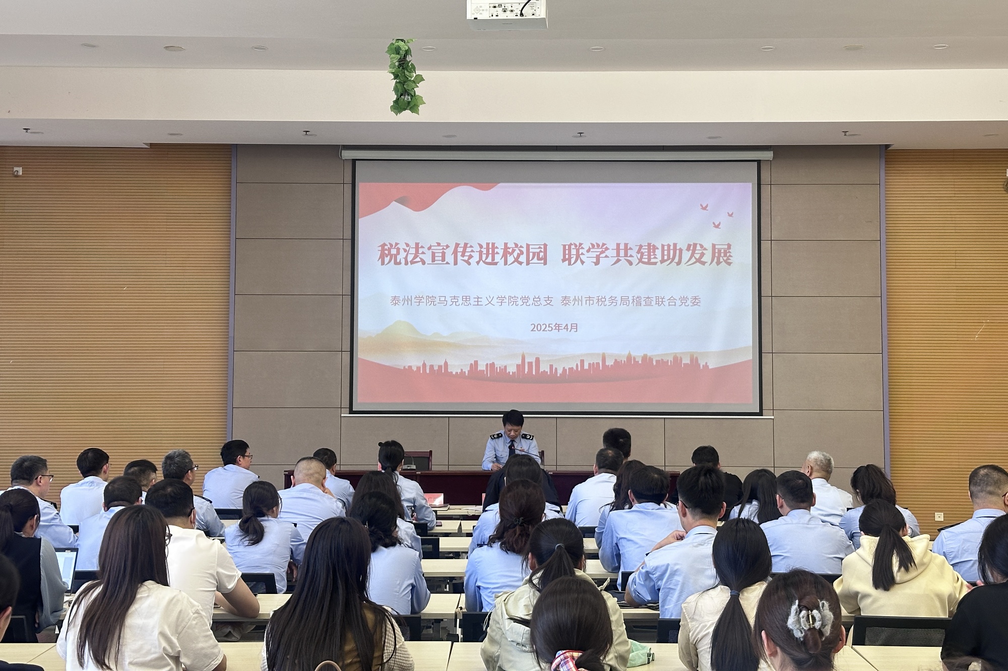 为深入学习贯彻党的二十大精神,加强校地党建交流,推动税法知识普及,4月29日下午,马克思主义学院党总支与泰州市税务局稽查条线三个党支部齐聚图书馆7楼胡瑗讲堂,举办以“税法宣传进校园 联学共建助发展”为主题的党日活动。