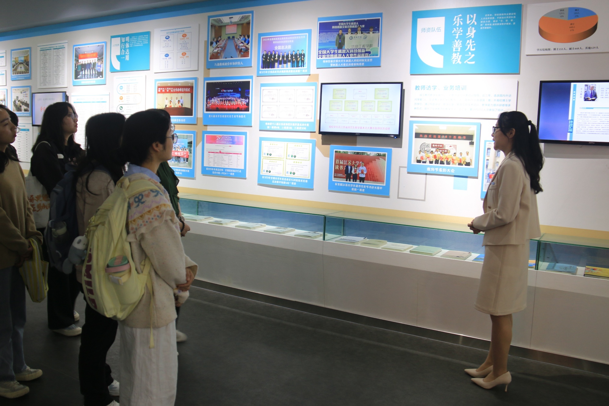 校史铸魂,感悟使命强担当。组织学生代表走进校史馆,透过历史图片、文献与实物,重温学校服务地方的办学历程。讲解员结合“教育、科技、人才三位一体”战略,阐释学校发展定位,引导学生将个人成长融入国家需求。