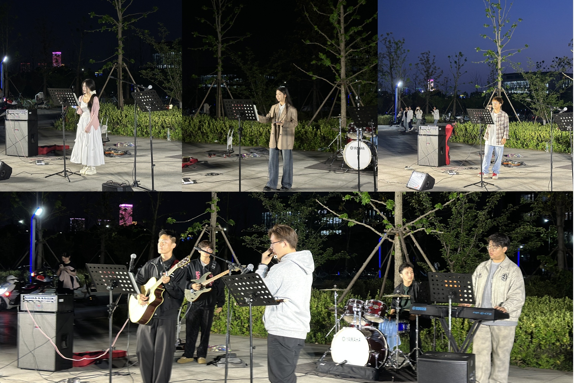 为激发学生音乐创作热情,营造开放包容的校园艺术氛围,5月9日晚,音乐学院“热浪开麦音跃操场”即兴K歌舞台第一期在新食堂广场火热开唱。活动以“零门槛、即兴玩”为理念,吸引全校300余名学生参加,通过开放式音乐互动活动,全开麦,不修音,用最纯粹的舞台展示最真实的声音,释放音乐最本真的魅力。