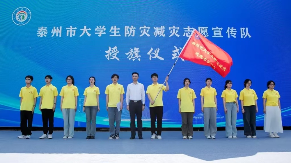 活动现场,泰州市应急管理局相关领导为信息工程学院防灾减灾志愿宣传队授旗。学生代表杨峰在发言中表示,以青春之名,扛起守护之责;以志愿之心,筑牢平安之基!