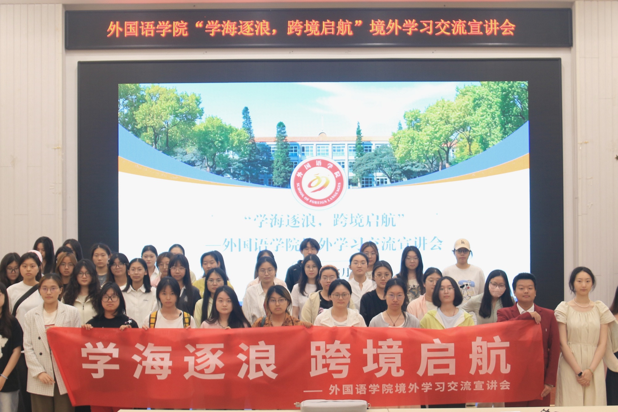 为拓宽学生国际视野,提升跨文化素养,5月29日,外国语学院在二适楼C2108举办“学海逐浪,跨境启航”境外学习交流宣讲会,吸引全院80余名学生参与。