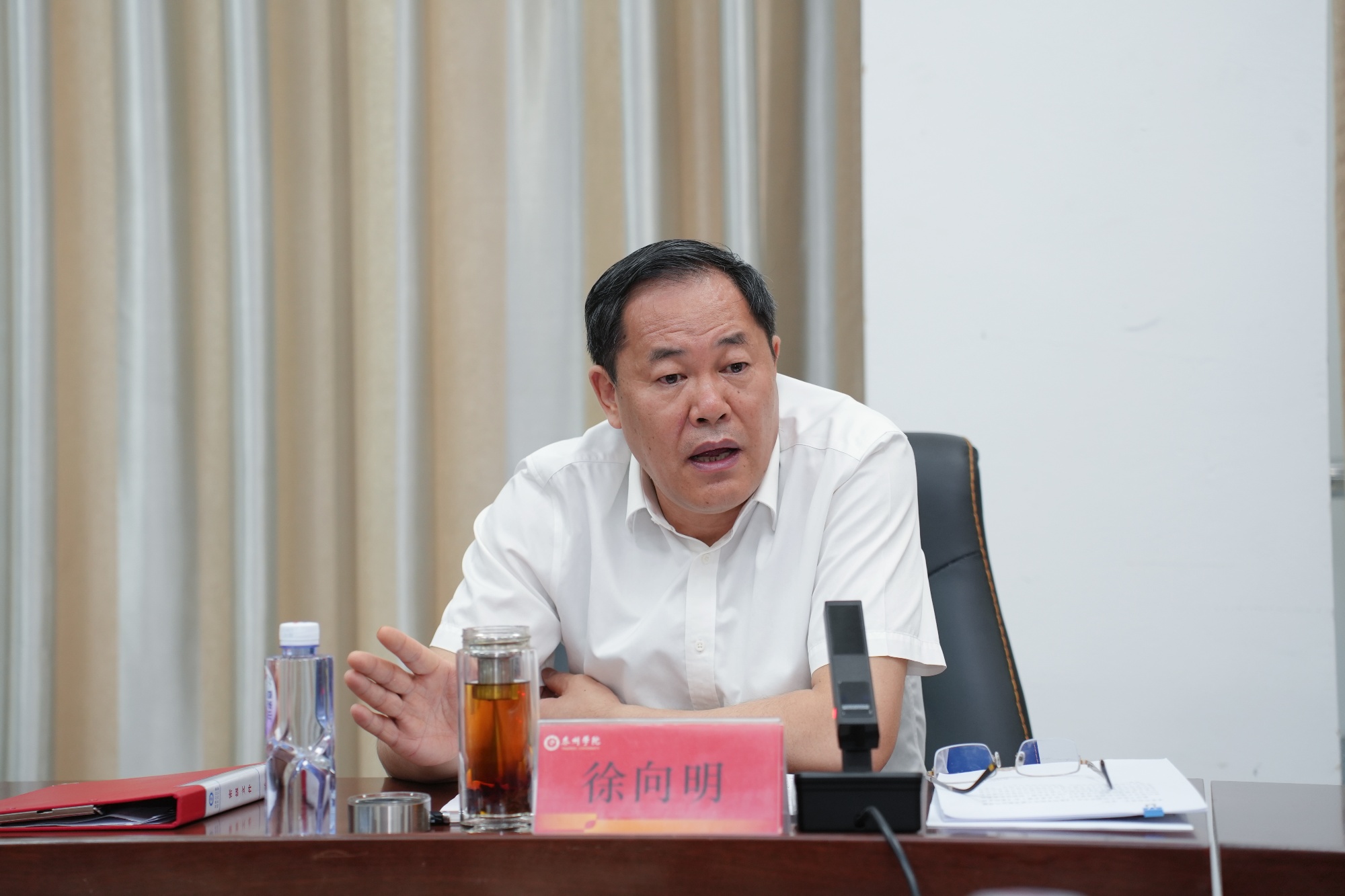 徐向明指出,师德师风建设是教师队伍建设的基础性工程,既是培育优良教风学风的根基,更是落实立德树人根本任务的关键所在。他就深化师德师风建设提出三点要求:一要认清新形势,聚焦“培养什么人、怎样培养人、为谁培养人”的时代命题,将师德师风建设作为育人工程的“生命线”;二要打好“组合拳”,推动师德师风建设与党建工作、业务工作深度融合,搭建师德师风建设的“四梁八柱”;三是要坚持问题导向,以整改落实为抓手,推进师德师风建设常态化、长效化,营造风清气正的育人环境。