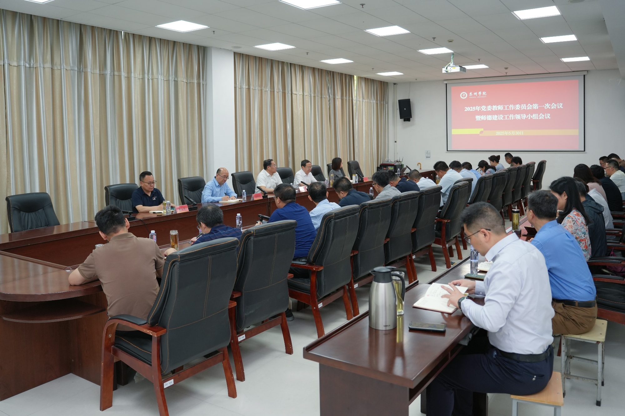 5月30日,学校召开党委教师工作委员会暨师德建设工作领导小组会议。校党委书记徐向明出席会议并讲话,校党委常委、副校长薛小平主持会议,党委教师工作委员会及师德建设工作领导小组全体成员参加会议。
