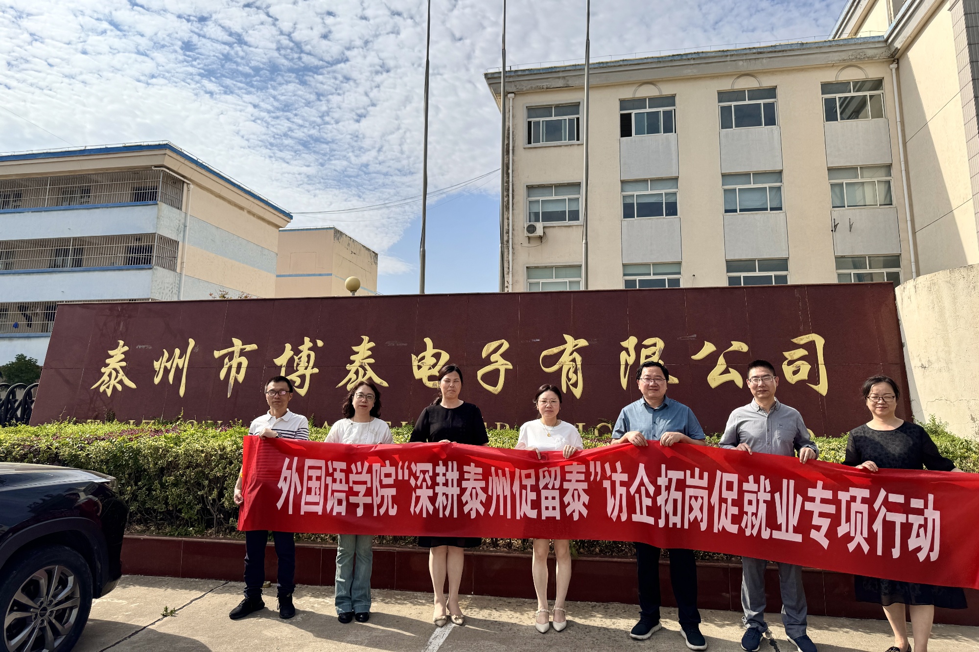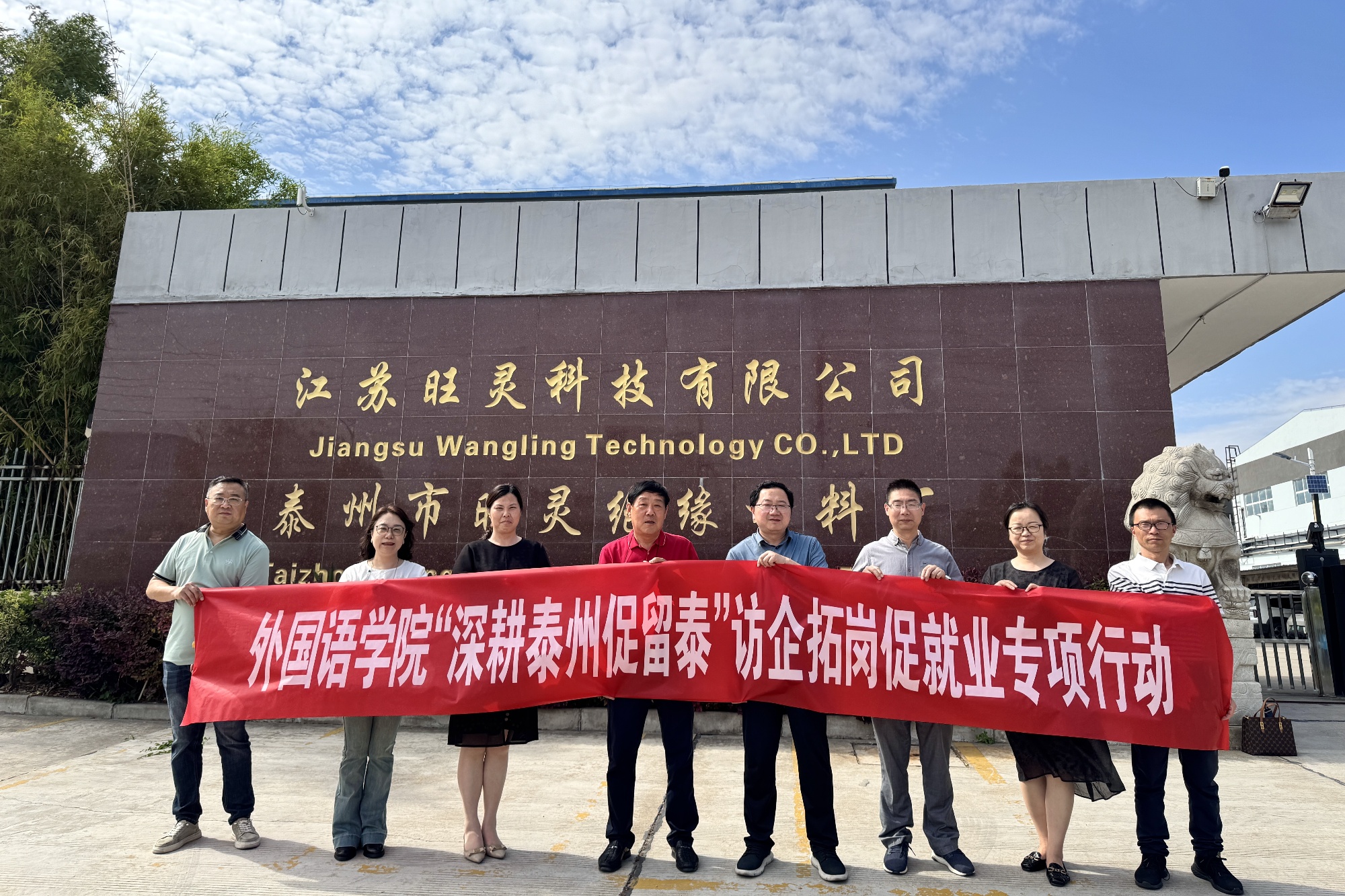 为搭建校企合作平台,促进毕业生高质量充分就业,6月5日,外国语学院领导班子成员及就业辅导员一行赴泰州市高港区开展访企拓岗促就业活动,实地走访江苏旺灵科技有限公司和泰州市博泰电子有限公司。