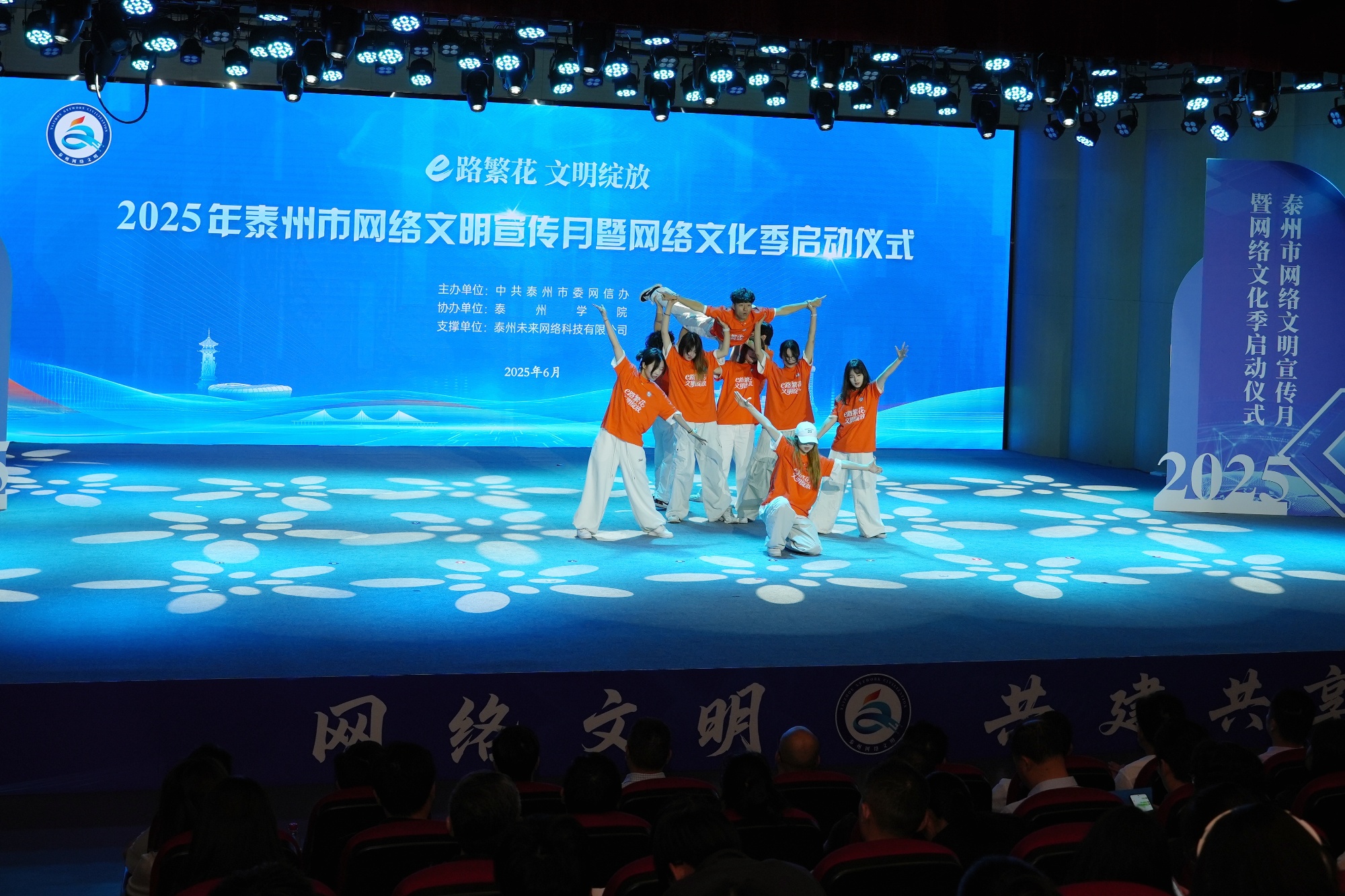 6月12日,2025年泰州市网络文明宣传月暨网络文化季启动仪式在bat365音乐厅举行。活动以“e路繁花·文明绽放”为主题,由市委网信办主办,bat365承办。市委网信办副主任朱明华,校党委常委、副校长魏小星等领导出席活动。
