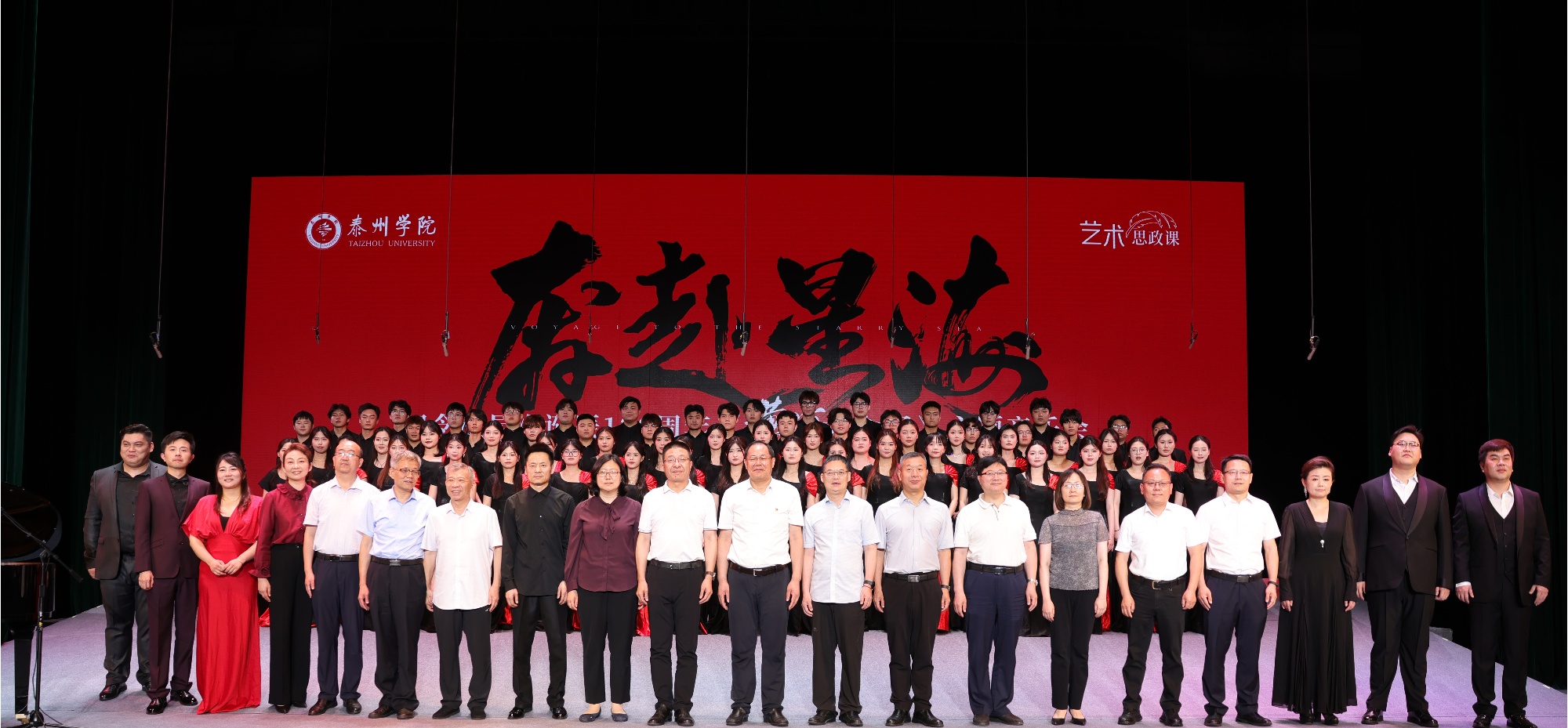 6月18日,由校党委宣传部主办、音乐学院承办的bat365在线中国官网登录入口“奔赴星海”——纪念冼星海诞辰120周年《黄河大合唱》专场音乐会在大学生活动中心上演。泰州市委宣传部、泰州市文化广电和旅游局、泰州市教育局、泰州市文学艺术界联合会相关负责同志,全体在泰校领导与近千名师生代表共同观看演出,在艺术与思政的交融中接受精神洗礼。