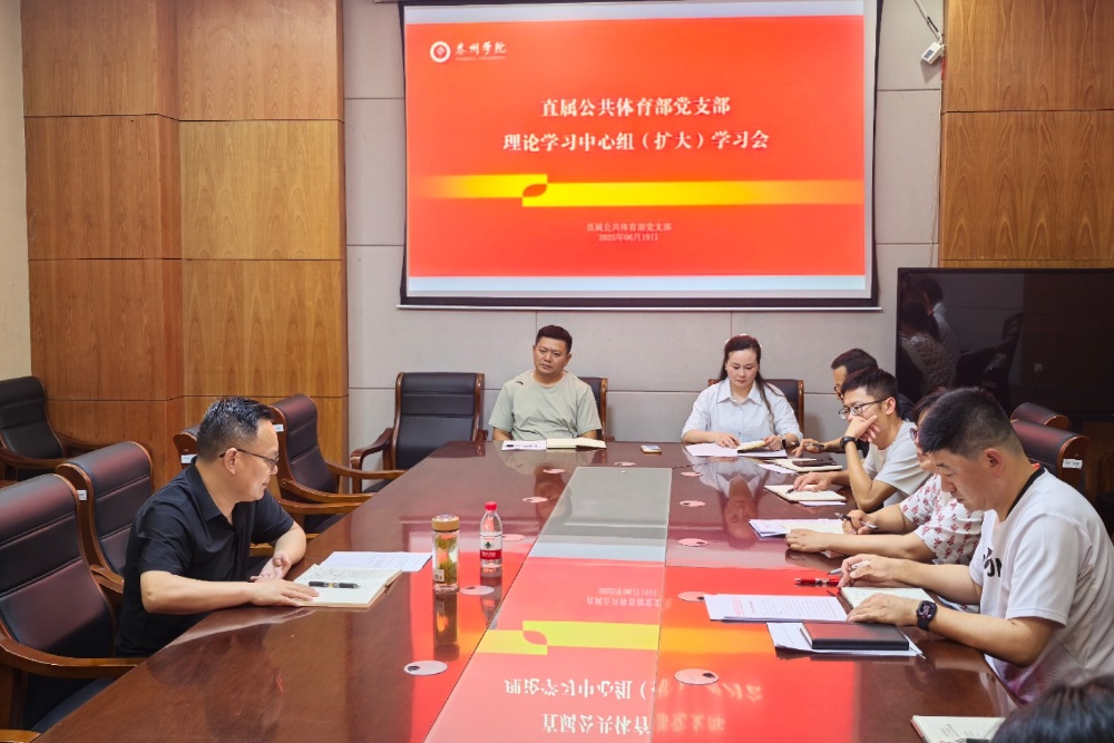 6月19日下午,直属公共体育部党支部理论学习中心组(扩大)学习会在二适楼C1119会议室召开,校党委常委、副校长魏小星列席旁听。会议由党支部书记赵益鑫主持,党支部理论学习中心组全体成员、各教研室主任参加学习。
