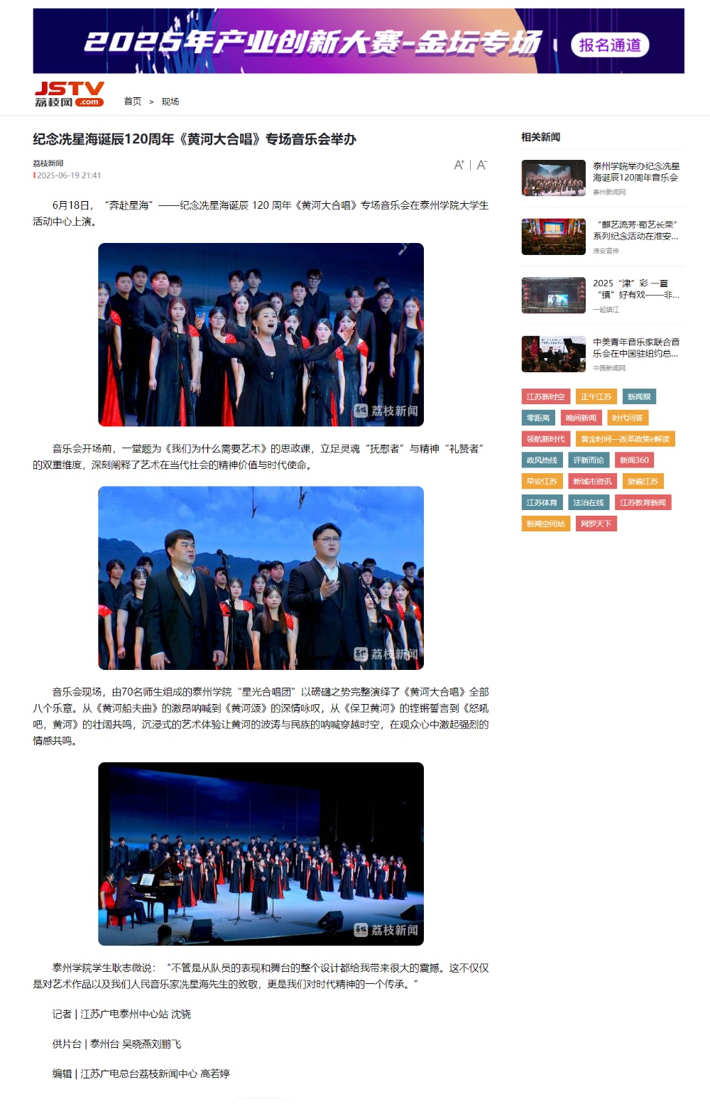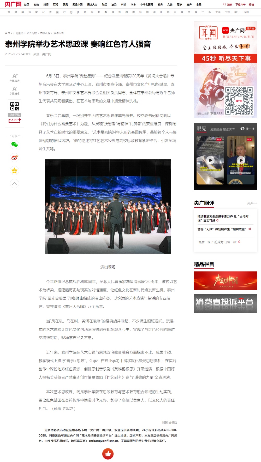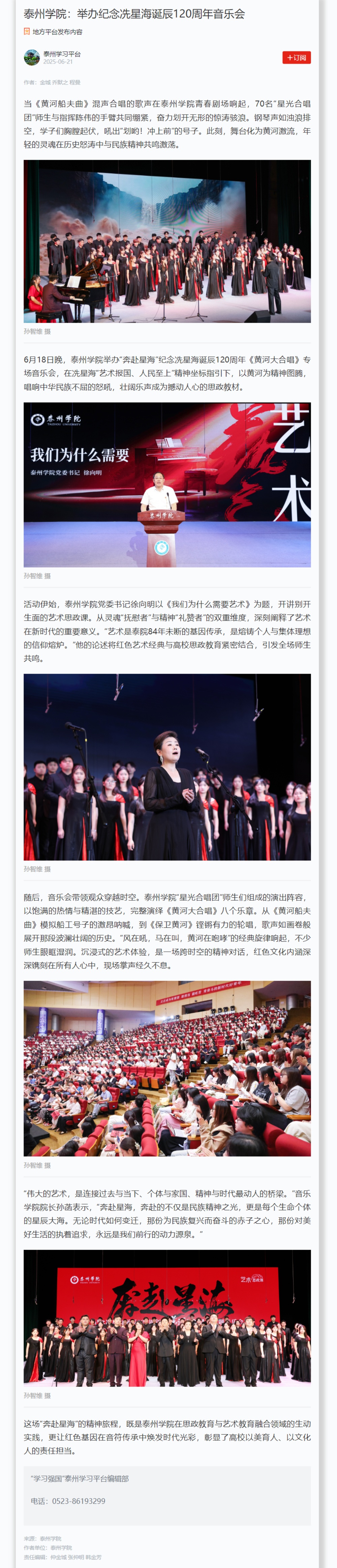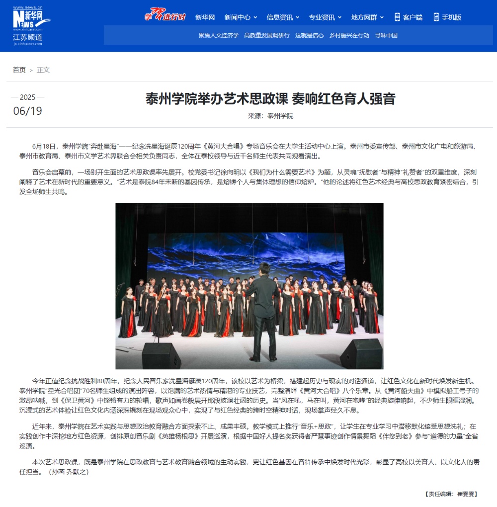 《学习强国》《荔枝网》《央广网》《新华网》《现代快报》《泰州日报》《泰州广播电视台》《微泰州》等多家媒体报道bat365艺术思政课