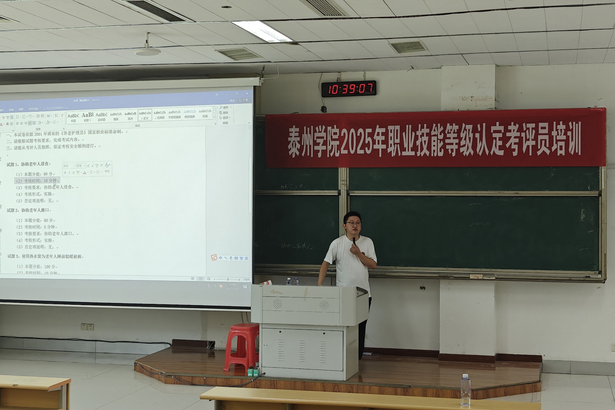本次培训采取“理论授课+实操模拟”的方式,围绕国家职业技能标准、考评流程规范、评分细则、职业道德等内容展开。培训邀请泰州市职业技能鉴定中心、泰州市社会福利中心等单位的专家进行专题授课,并结合实际案例进行模拟考评演练,帮助学员全面掌握考评要点,提升执考能力。