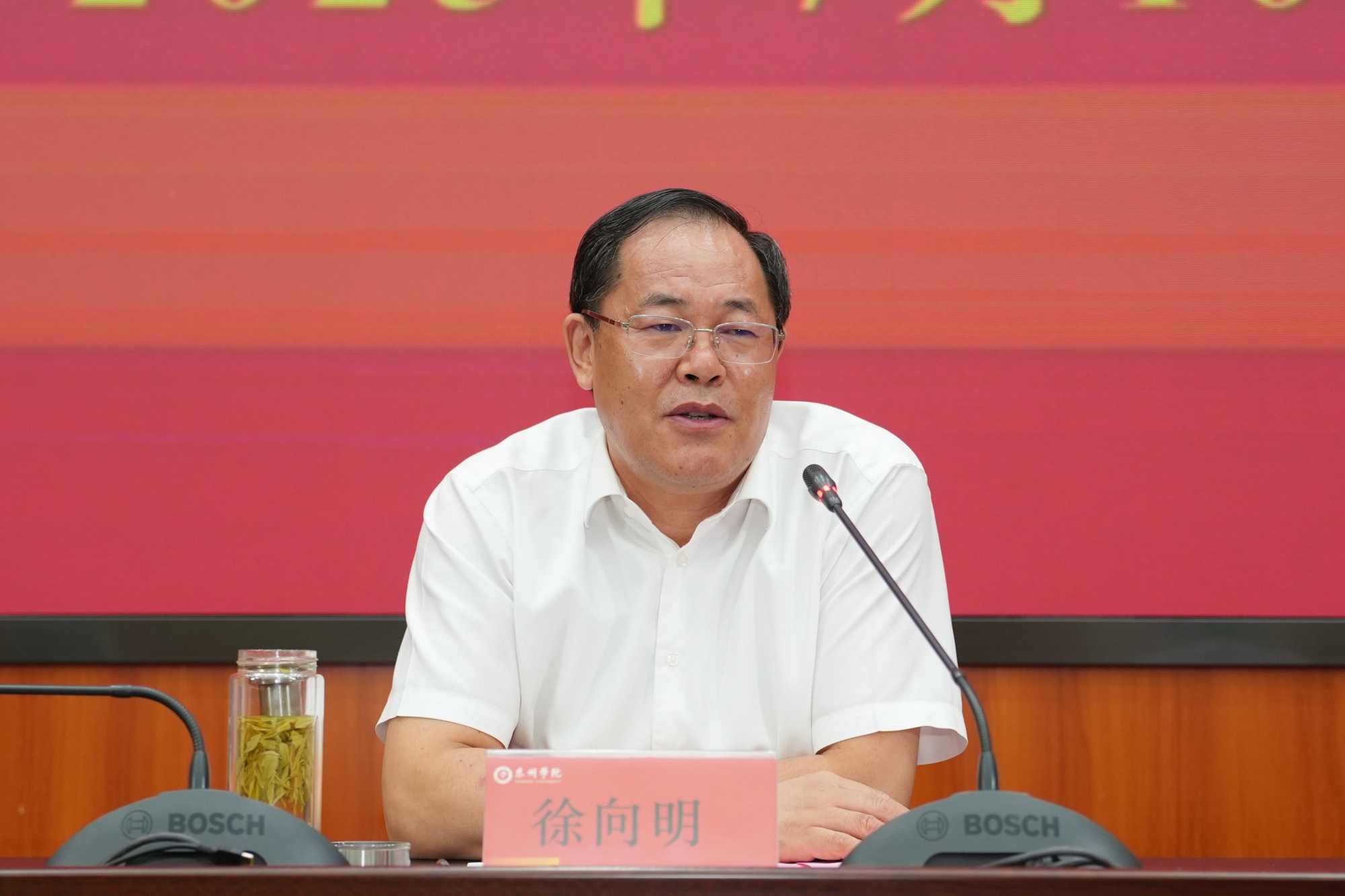徐向明指出,暑期不仅是我们重整行装再出发的休整期,更是我们筑牢理想信念根基、蓄积治校兴学动能的战略机遇期,各单位要充分利用暑期时间,认真做好学习教育、巡视整改、安全稳定工作等,积极谋划“十五五”事业发展工作,确保暑期各项重点任务高效落实,为秋学期工作顺利开展打下坚实的基础。他要求,全体正高职称教师、教研室主任、党支部书记、科级以上管理人员要对岗位、学生和教师满怀敬畏之心,发扬敬业精神,在推进产教融合、“三融三促”等重点工作中打头阵,以点带面,充分调动全校教师的积极性,提高学校人才培养质量。