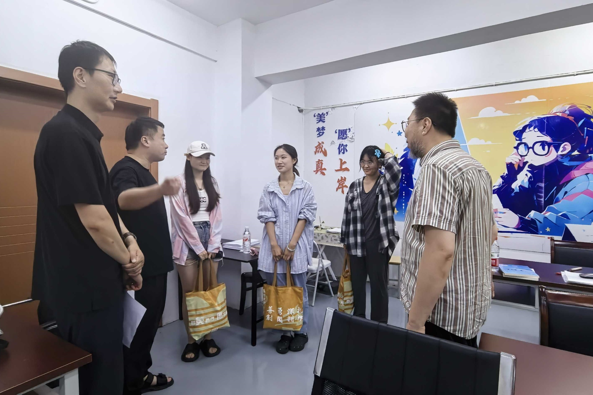 于晶晶叮嘱同学们在专注学业与实践的同时,务必重视身体健康,科学做好防暑降温,并表示学院将全力为大家创造良好的留校学习与生活环境。何鑫勉励考研学子坚定信念、稳扎稳打,鼓励备赛同学精益求精、勇创佳绩,并对参与社会实践的同学将美育融入服务社会的行动表示赞赏。