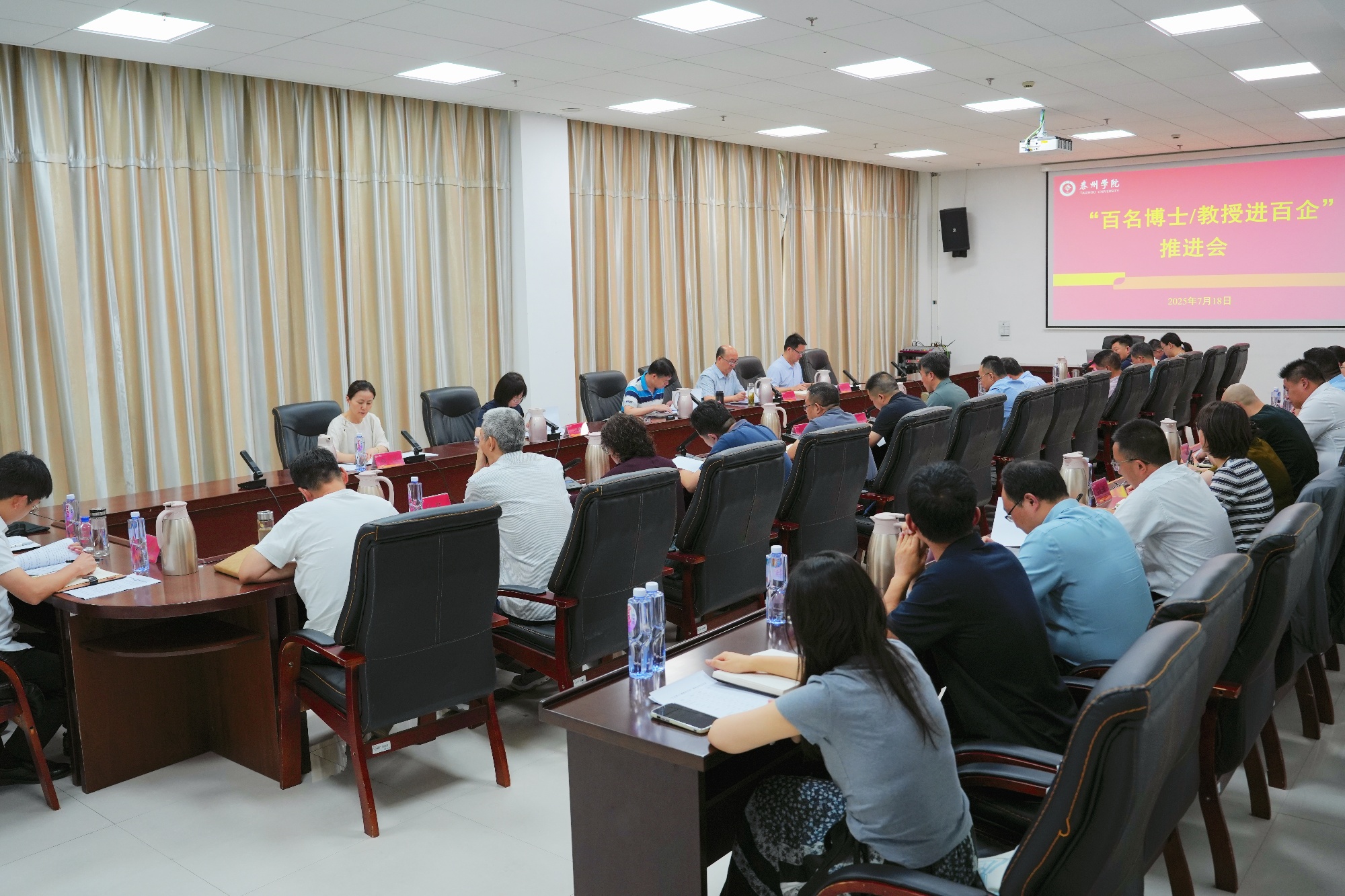 7月18日上午,“百名博士/教授进百企”工作推进会在济川校区D2109会议室召开。校党委副书记、校长冯锋,党委常委、副校长沈荣鑫、卜慧芬、汤艳峰,相关职能部门负责人,院部主要负责人及分管科研副院长参加会议。
