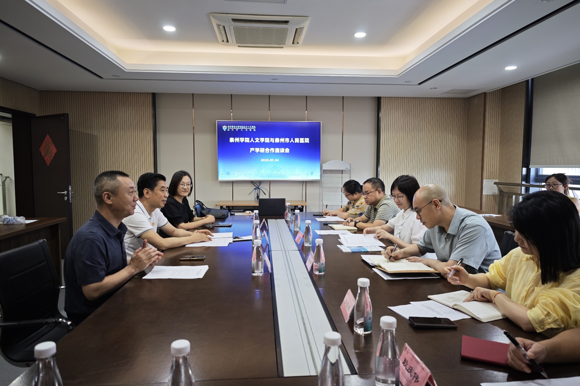 为深化“三融三促”战略部署,推进校城、校企共建,7月24日上午,校党委常委、副校长卜慧芬赴南京医科大学附属泰州市人民医院,看望慰问正在医院宣传统战处参与岗位实践和专业实习的网络与新媒体专业师生,并出席产学研合作座谈会。南京医科大学附属泰州市人民医院党委副书记田为中出席座谈。校人文学院相关负责人及网络与新媒体专业、秘书学专业教师代表,医院宣传统战处相关负责人参加活动。
