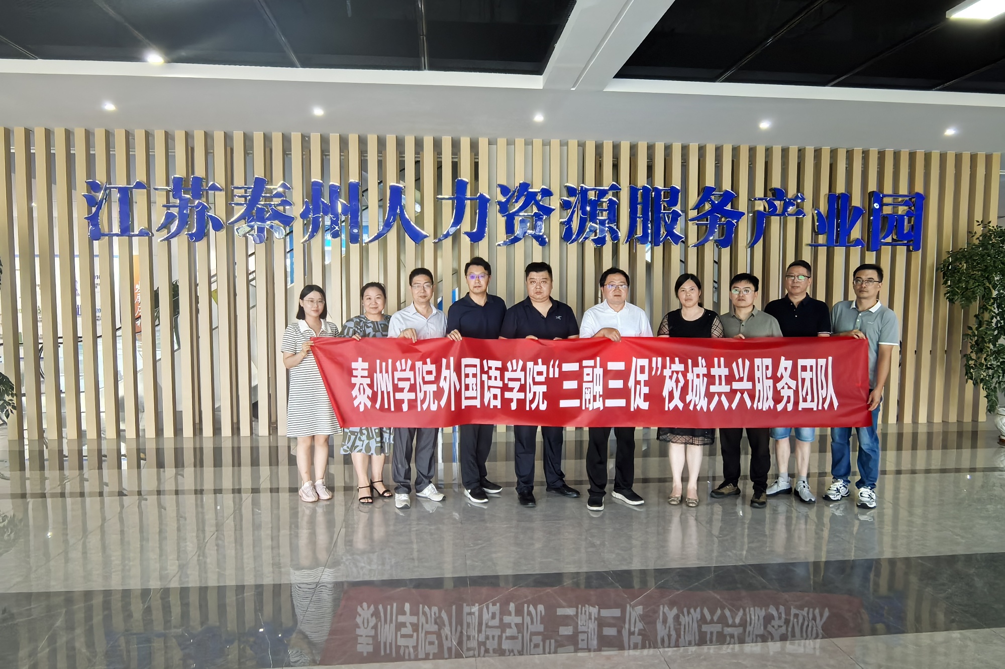 为有效落实“三融三促”校城共兴计划,7月25日,外国语学院党总支书记练红珍、院长李更春,党总支副书记、副院长全小军带领相关专业博士、骨干教师组成的“三融三促”校城共兴服务团队,走进泰州人力资源服务产业园开展调研。双方围绕深化产教融合、校地融通以及拓宽学生就业渠道等方面深入探讨。