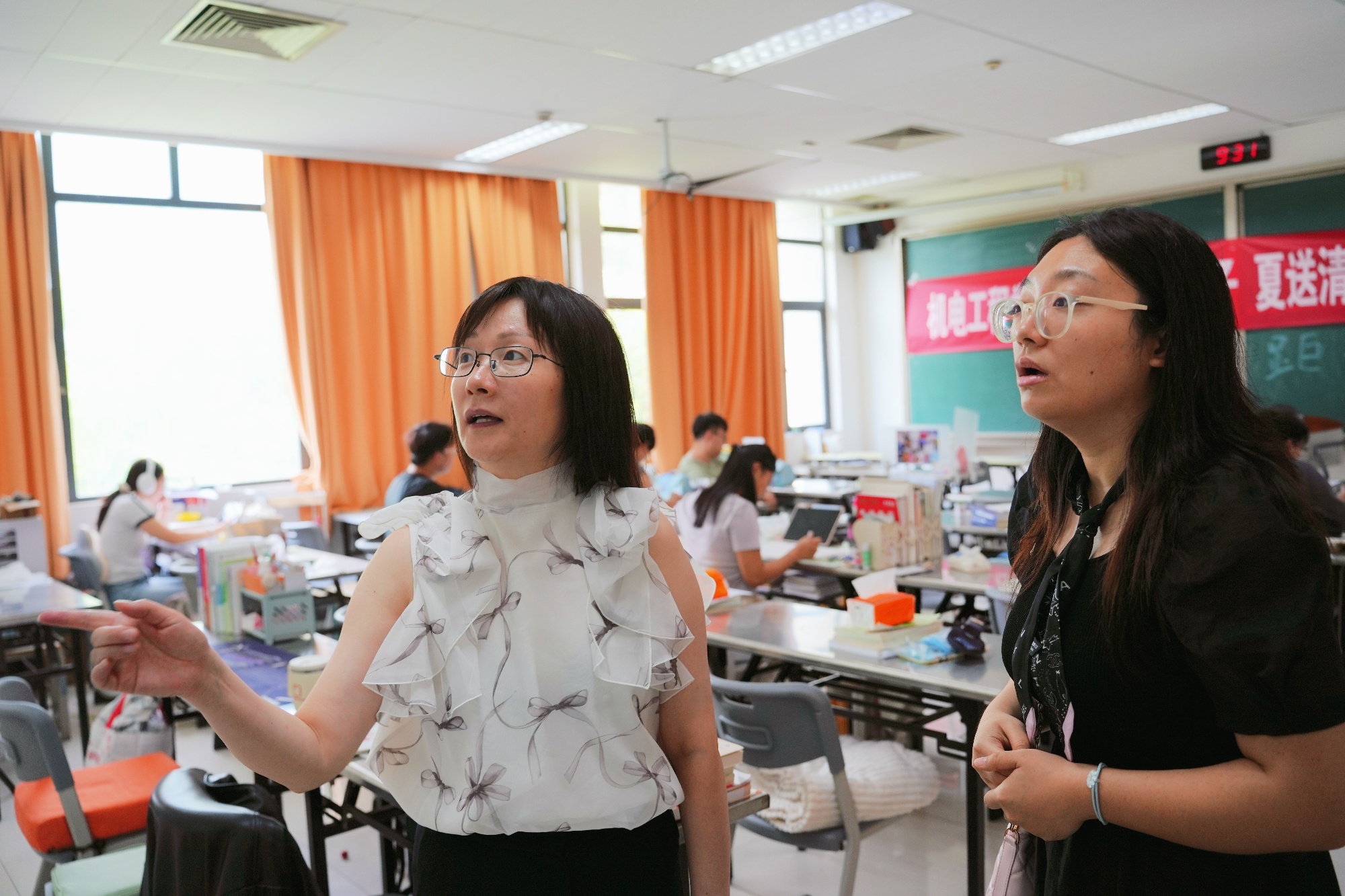在就业人才服务站,卜慧芬给学生代表发放慰问物品,并询问同学们的备考方向、复习进度,关心大家暑期在校的住宿条件和饮食情况。她鼓励大家合理规划暑期时间,保持良好的身心状态,为考研考编全力以赴。