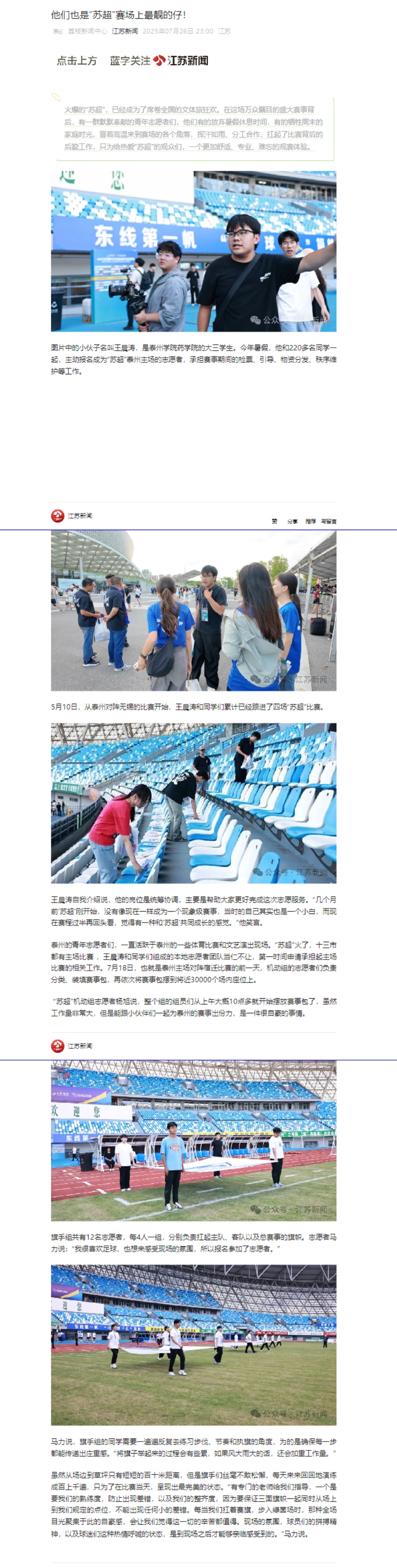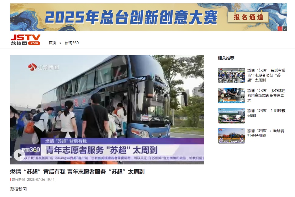 《江苏新闻》《荔枝网》2025年7月26日报道“苏超”背后的bat365青年志愿者