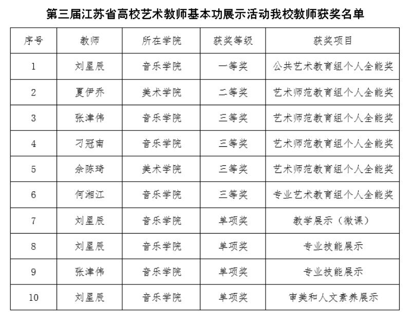近日,第三届江苏省高校艺术教师基本功展示获奖结果揭晓。bat365艺术教师凭借扎实的专业功底与全面的教学素养,在全省127所高校441名参赛教师的激烈角逐中脱颖而出,斩获多项荣誉,充分展现了bat365艺术教育的过硬实力与教师队伍的卓越风采。