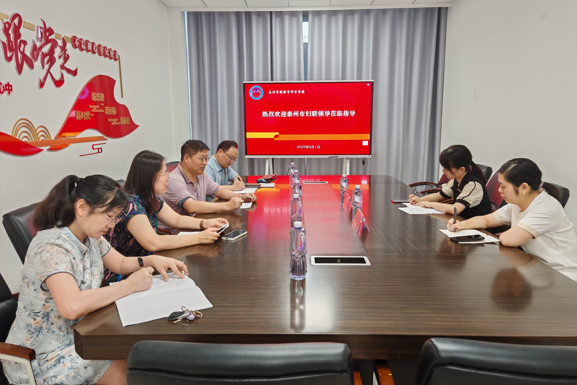 8月1日下午,泰州市妇联党组成员、副主席赵晶,家儿部部长陈子涵一行到教育科学学院开展专题调研。教育科学学院院长潘小明,副院长朱以财、徐莹莹,以及学前教育系、心理学教研室负责人参加座谈交流。