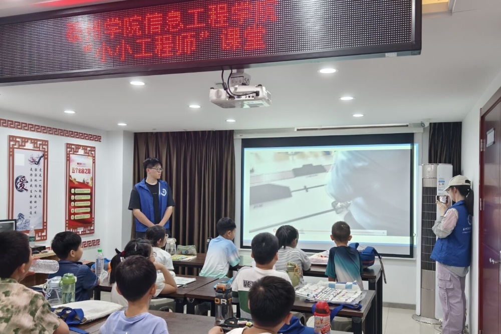 为积极响应国家乡村振兴战略号召,推动科技教育下沉基层,激发少年儿童的科学兴趣,7月,信息工程学院“‘智慧乡村’计划:智慧社区与科技助农”暑期社会实践团队深入泰州市春景、响林等多个社区,组织开展了以人工智能启蒙为核心的系列少儿科普活动。团队以“大手拉小手”“小小工程师”等品牌项目为载体,通过寓教于乐的形式,在孩子们心中播撒科技的种子,为乡村教育注入创新活力。