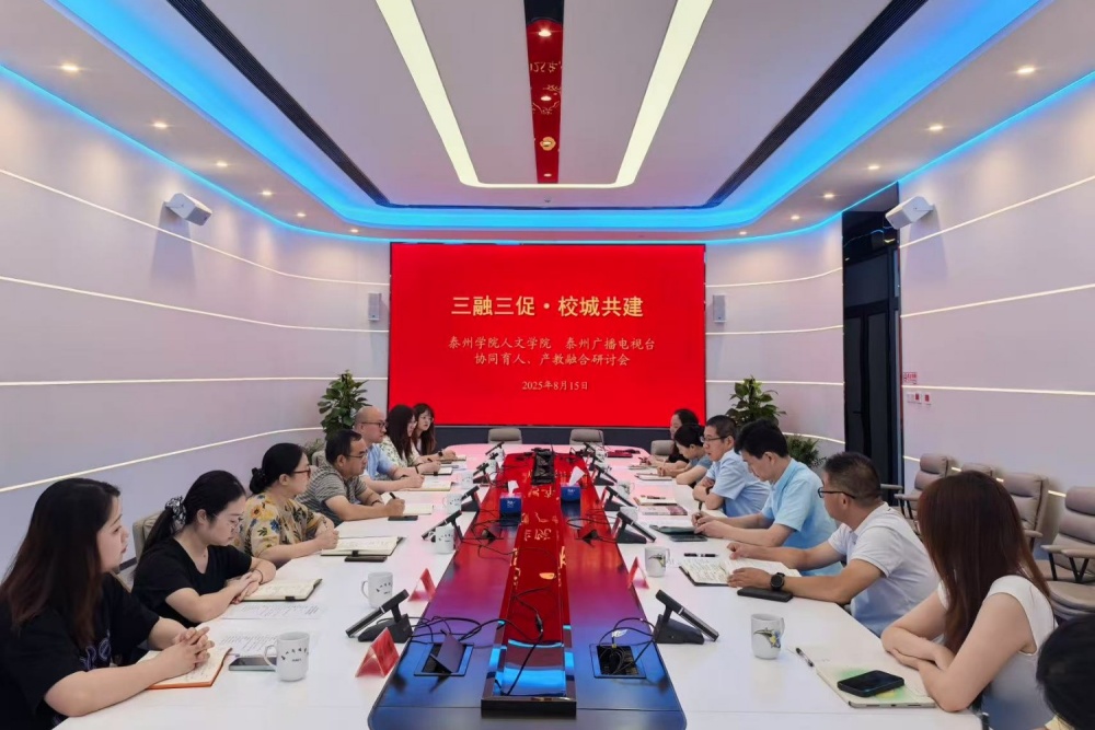 8月15日上午,人文学院院长钱成、教务处副处长季恒、人文学院副院长官小燕等一行赴泰州广播电视台,看望慰问正在该台进行岗位实践与专业实习的网络与新媒体专业师生,并与电视台总编辑李晋一行举行了协同育人、产教融合研讨会,旨在推进“三融三促”校城共兴计划,推动产学研协同发展。