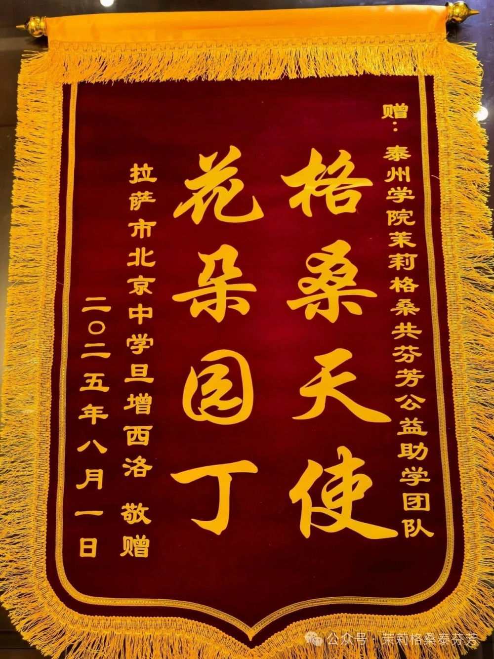 8月15日,一面写有“格桑天使花朵园丁”的锦旗和一封手写感谢信,从海拔4300米的西藏自治区日喀则市定日县岗嘎镇寄至bat365马克思主义学院,为马克思主义学院党总支指导的暑期公益助学活动写下温暖注脚。