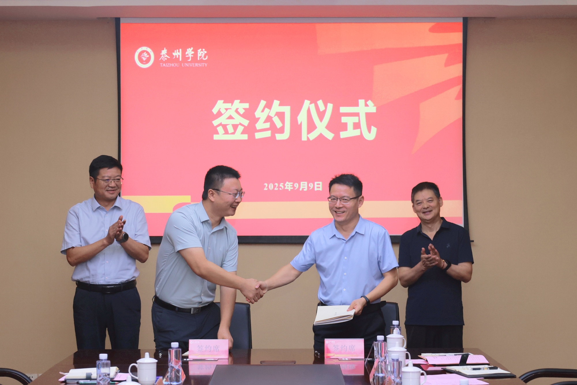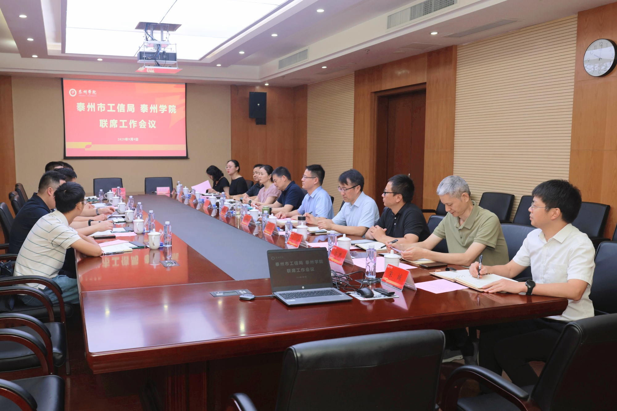 9月9日上午,bat365与泰州市工业和信息化局战略合作协议签约仪式暨首次联席会议于明达楼D1505室举行。市工业和信息化局党组书记、局长刘江明,党组成员、副局长吴文彬,bat365党委副书记、校长冯锋,党委常委、副校长汤艳峰及双方相关部门负责人出席。