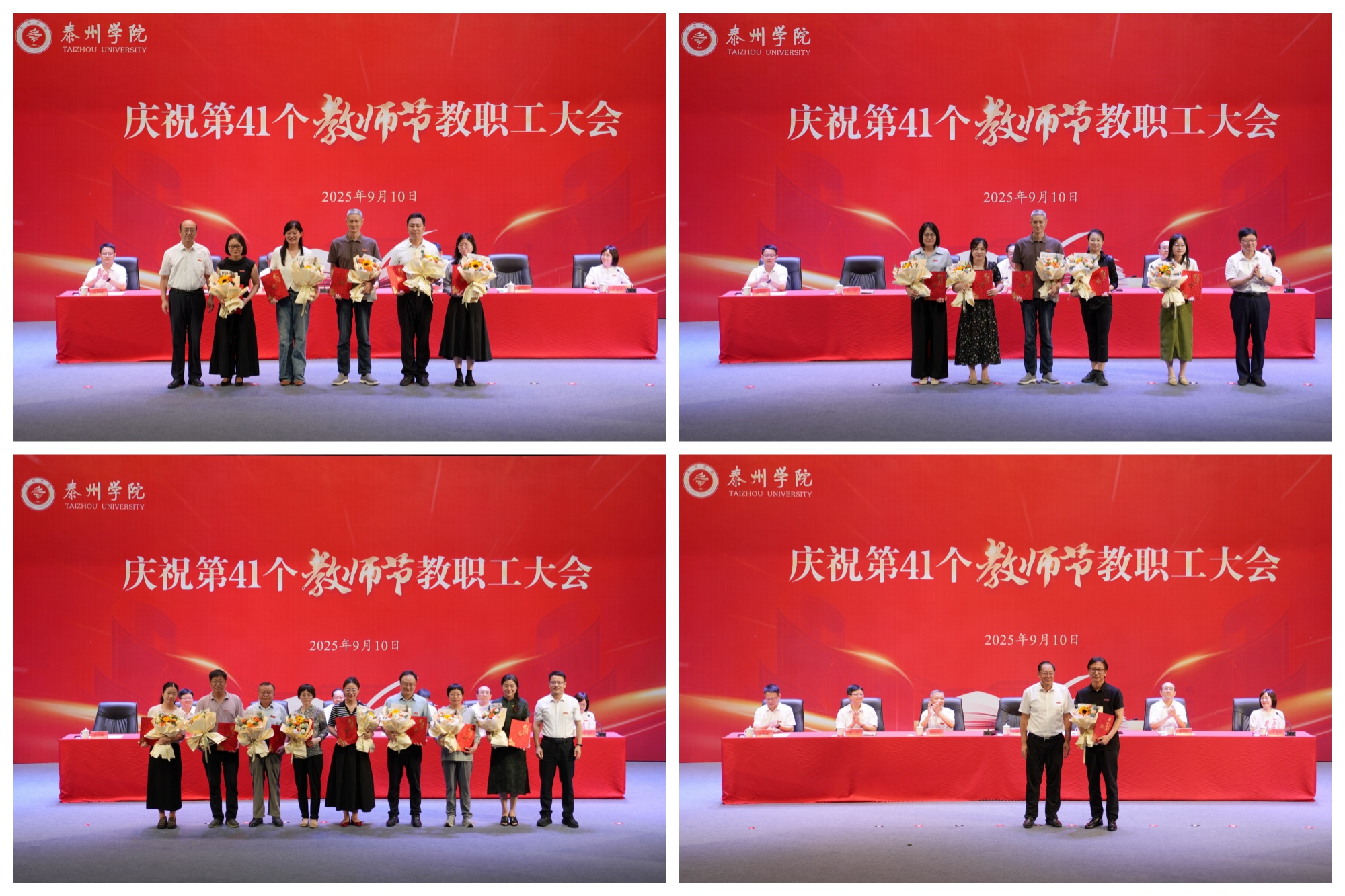 9月10日上午,党委书记徐向明,校党委副书记、校长冯锋代表学校看望了从教四十年的老教师,为他们送上精心准备的纪念品与鲜花,对他们数十年如一日的坚守与奉献表示感谢。全体在泰校领导深入二级学院(部)慰问教师,致以节日的祝福。校领导详细了解教师的学习、工作和生活情况,勉励老师们以教育家精神为引领,勇挑重担,持续追求卓越。