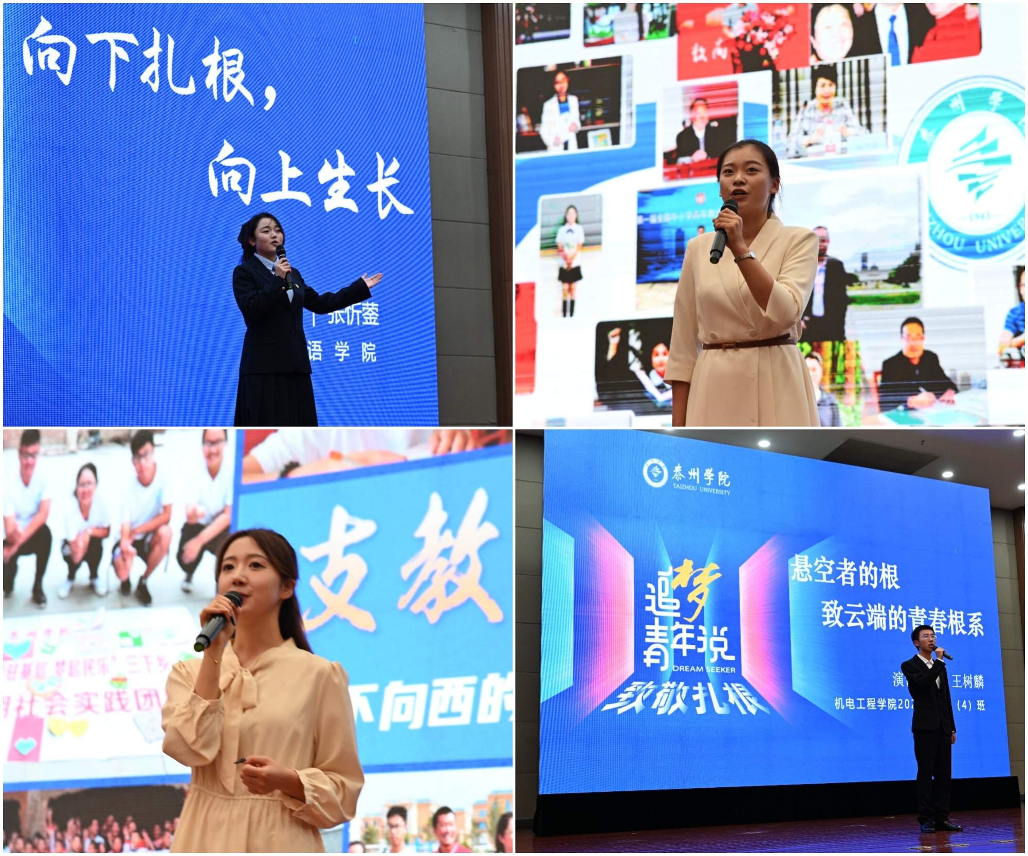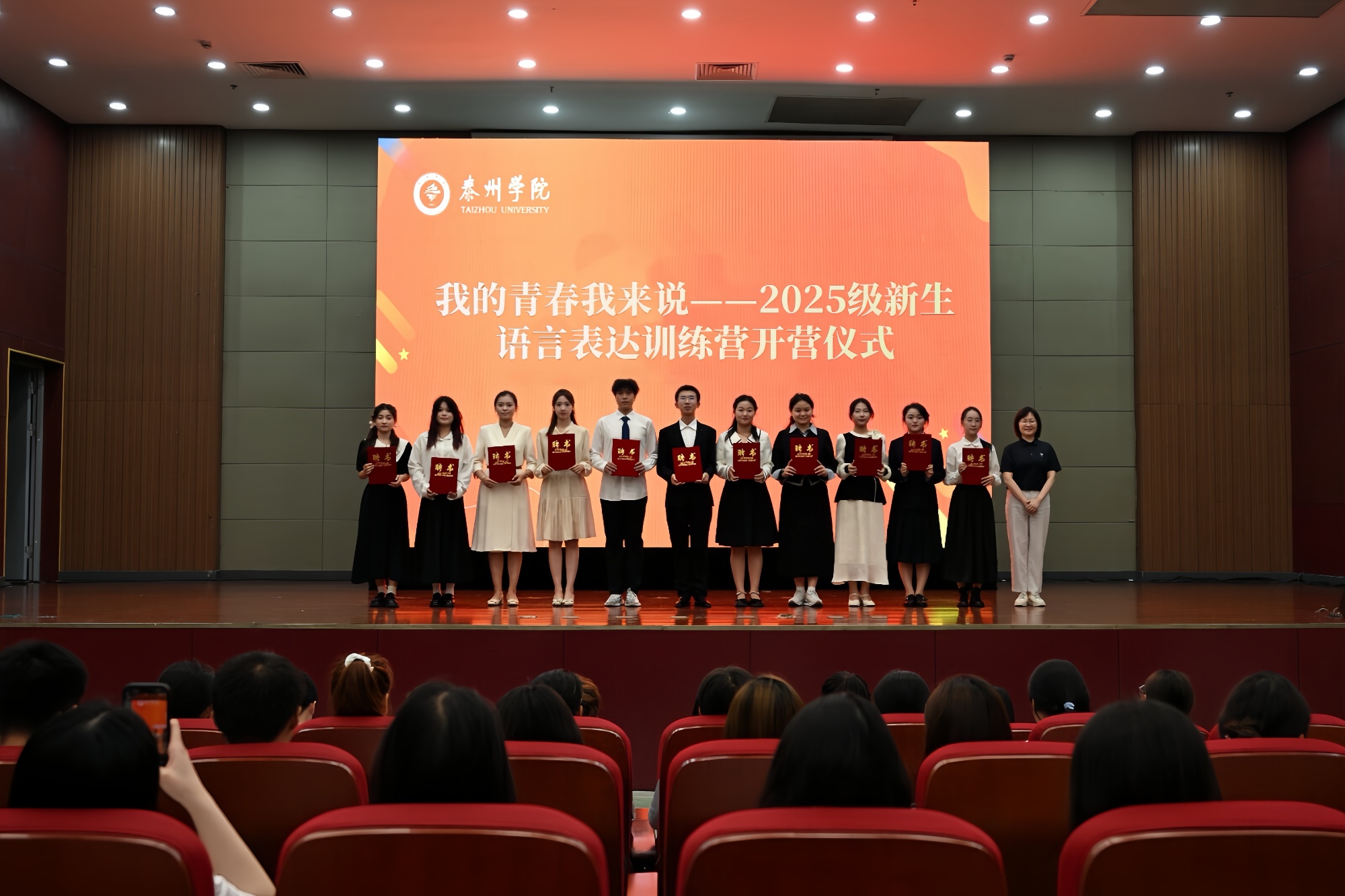 开营仪式后,训练营首堂课程——“青年说”展演正式开启。11 位“小老师”围绕“泰院精神”核心关键词“扎根”展开主题演讲,以亲历故事、校友案例及校园实践为切入点,从教育坚守、学术钻研、社会服务等多元维度,深情诠释“扎根”的精神内涵与时代价值。“泰院人的‘扎根’从不是一句口号”,“小老师”们兼具思想深度与情感温度的表达,不仅展现了泰院学子的语言风采,更让在场新生深切感受到校魂传承的力量。