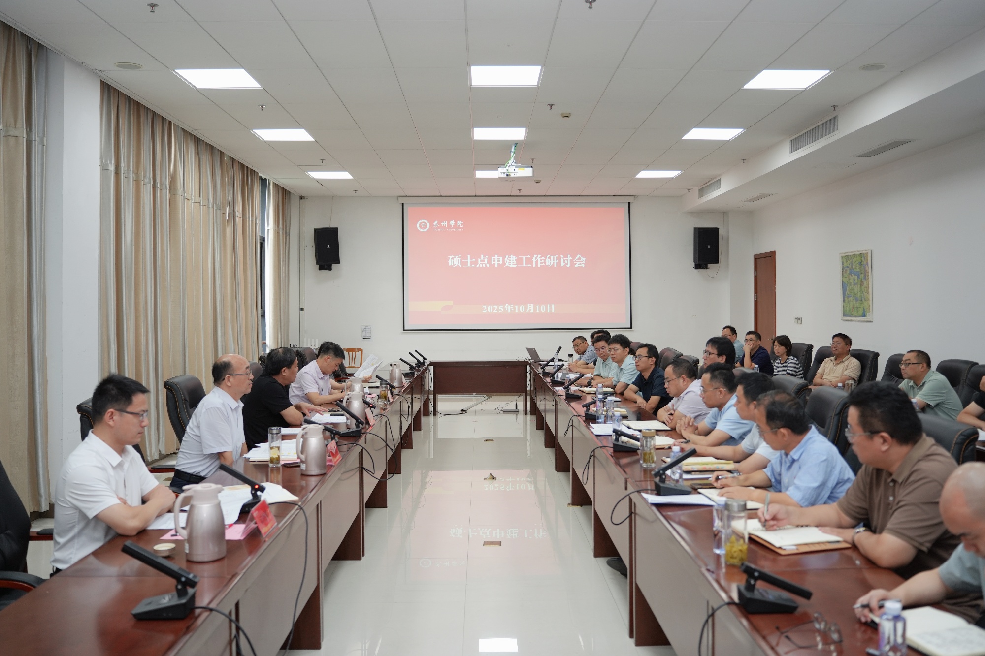 10月10日上午,bat365在明达楼D2109会议室召开硕士点申建工作研讨会。党委书记徐向明,党委副书记、校长冯锋,党委常委、副校长沈荣鑫、卜慧芬、汤艳峰,纪委办公室、教务处、人事处和师范教育中心负责人,硕士点申建相关学院党总支书记、院长、科研副院长和研究生处全体人员参加会议。会议由汤艳峰主持。