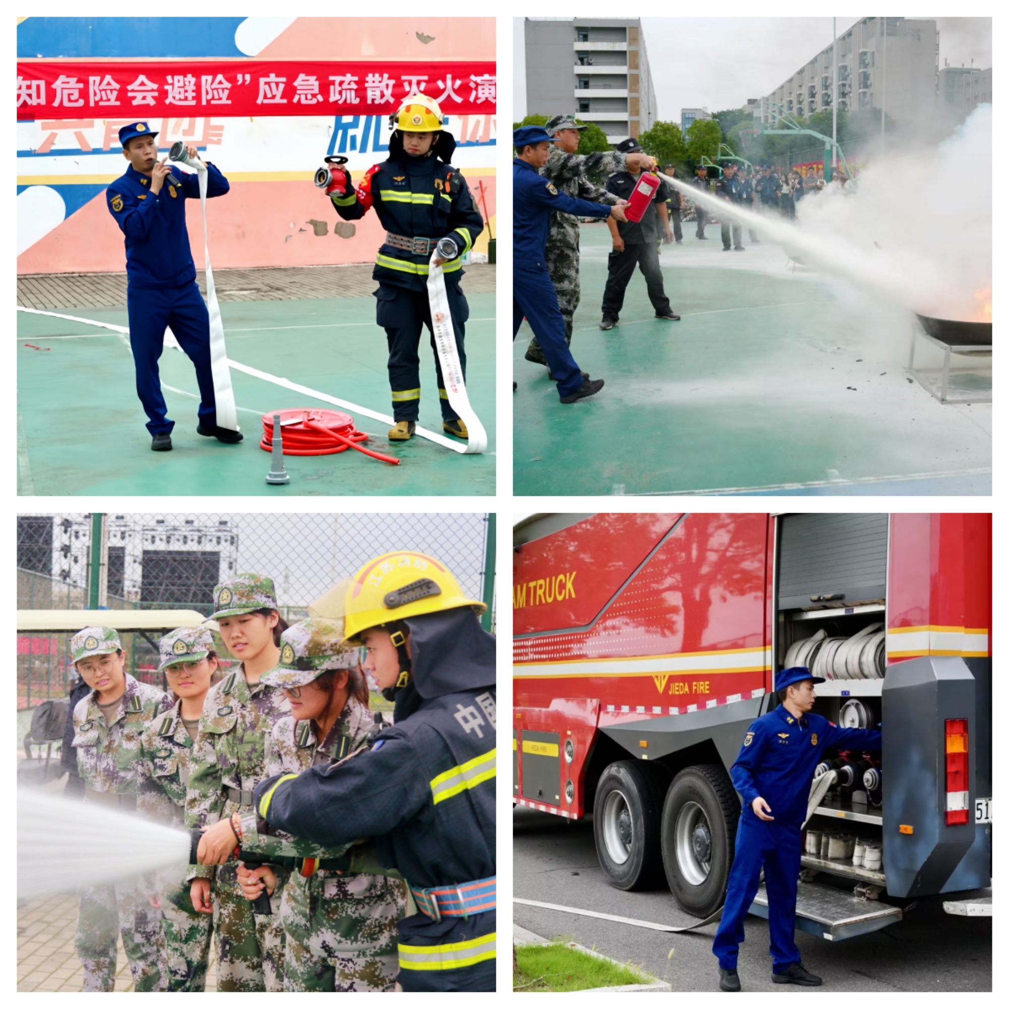 应急疏散结束后,进入灭火演练环节。泰州市海陵大队春晖路消防站教官管伟敏详细讲解了灭火器和消火栓的构造及正确使用方法,并结合真实火灾案例,强调了初期火灾扑救的重要性与注意事项。随后,在消防教官的现场指导下,各学院新生代表和教职员工代表依次上前,亲身体验灭火器和消防水枪灭火操作,通过实战演练掌握灭火技能。