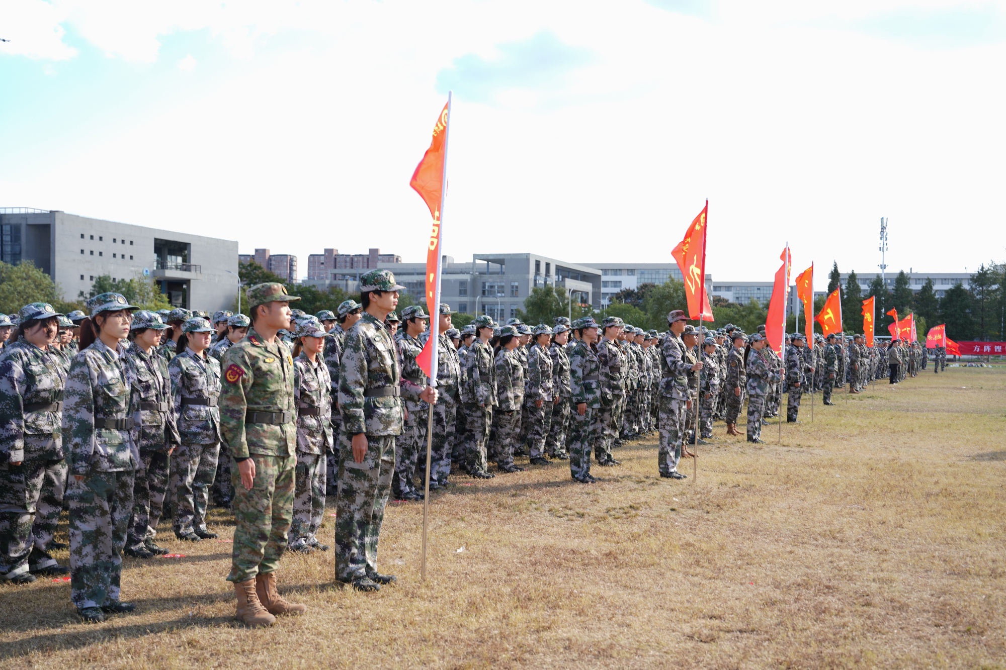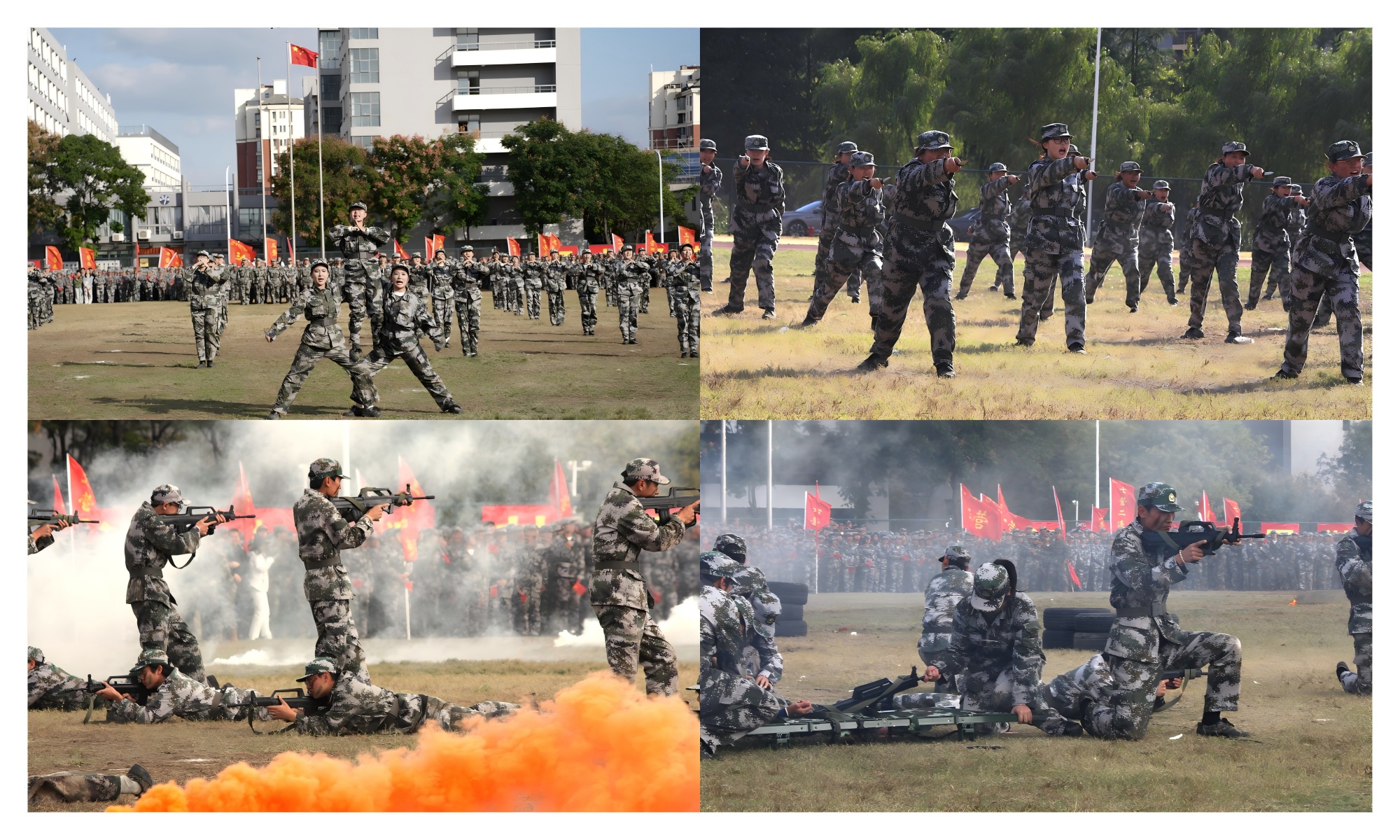 大会在庄严的升旗仪式中拉开帷幕。41个新生连在各自营旗、连旗的引领下,迈着铿锵有力的步伐依次通过主席台,以昂扬的精神状态接受检阅;军事科目展示环节,匕首操果敢凌厉、擒敌拳气势如虹、战术演练配合默契,赢得了全体师生阵阵掌声。