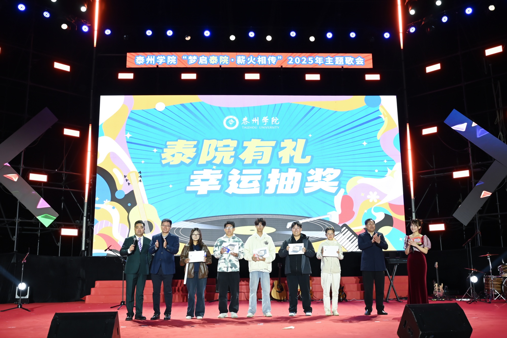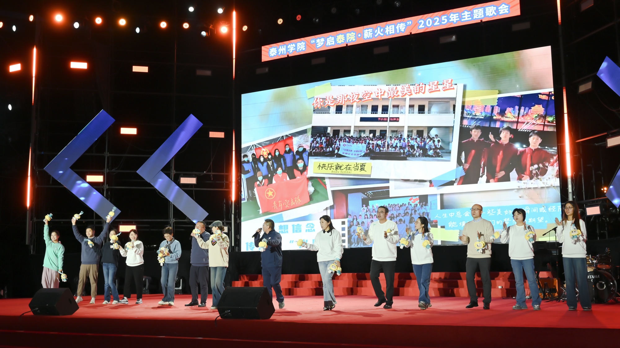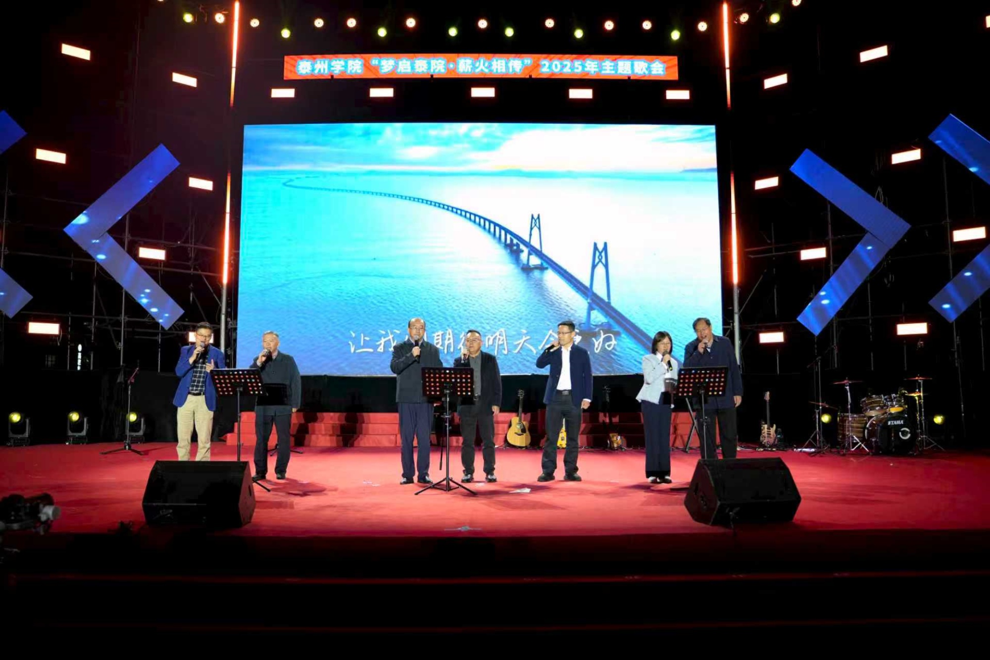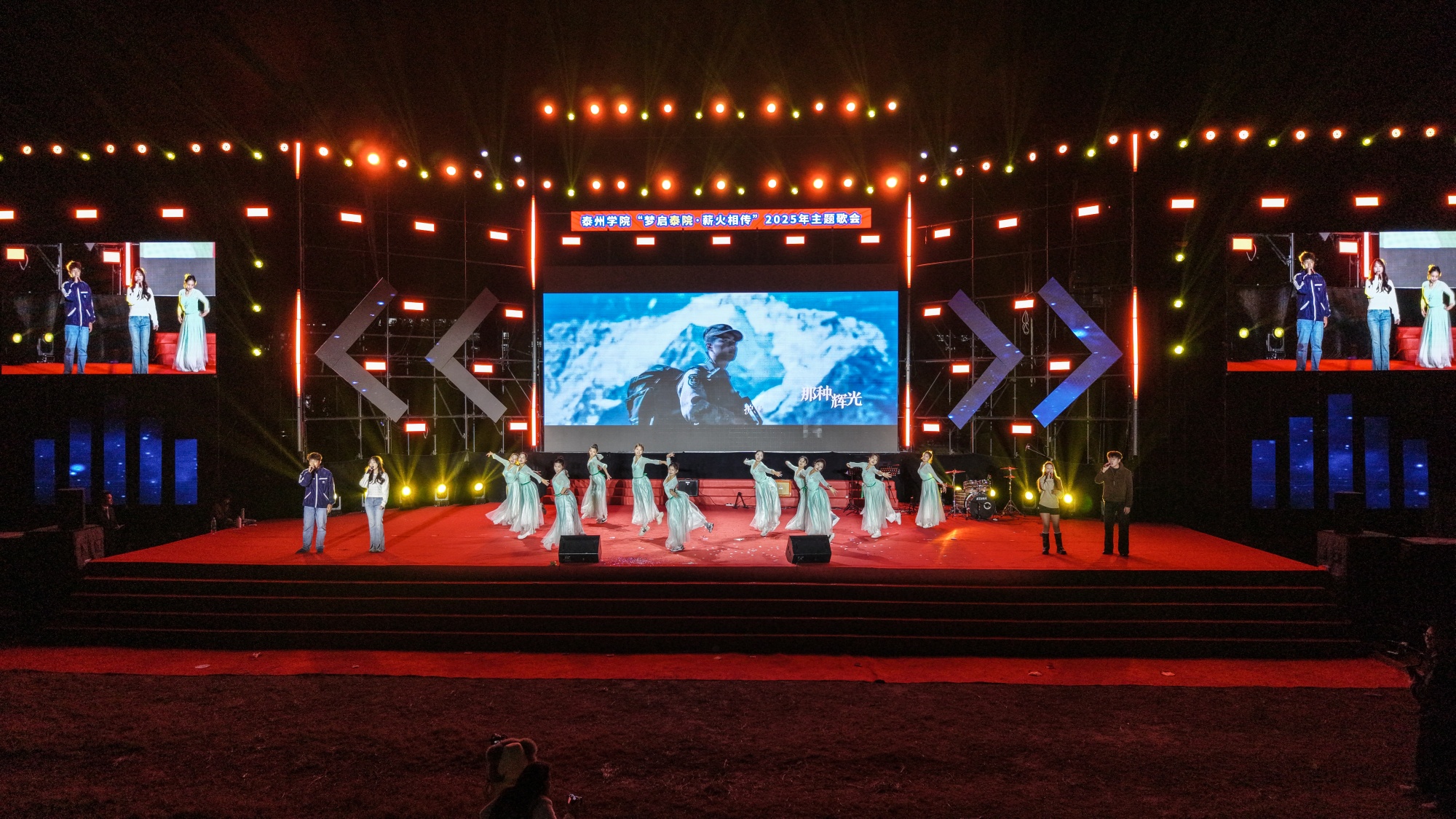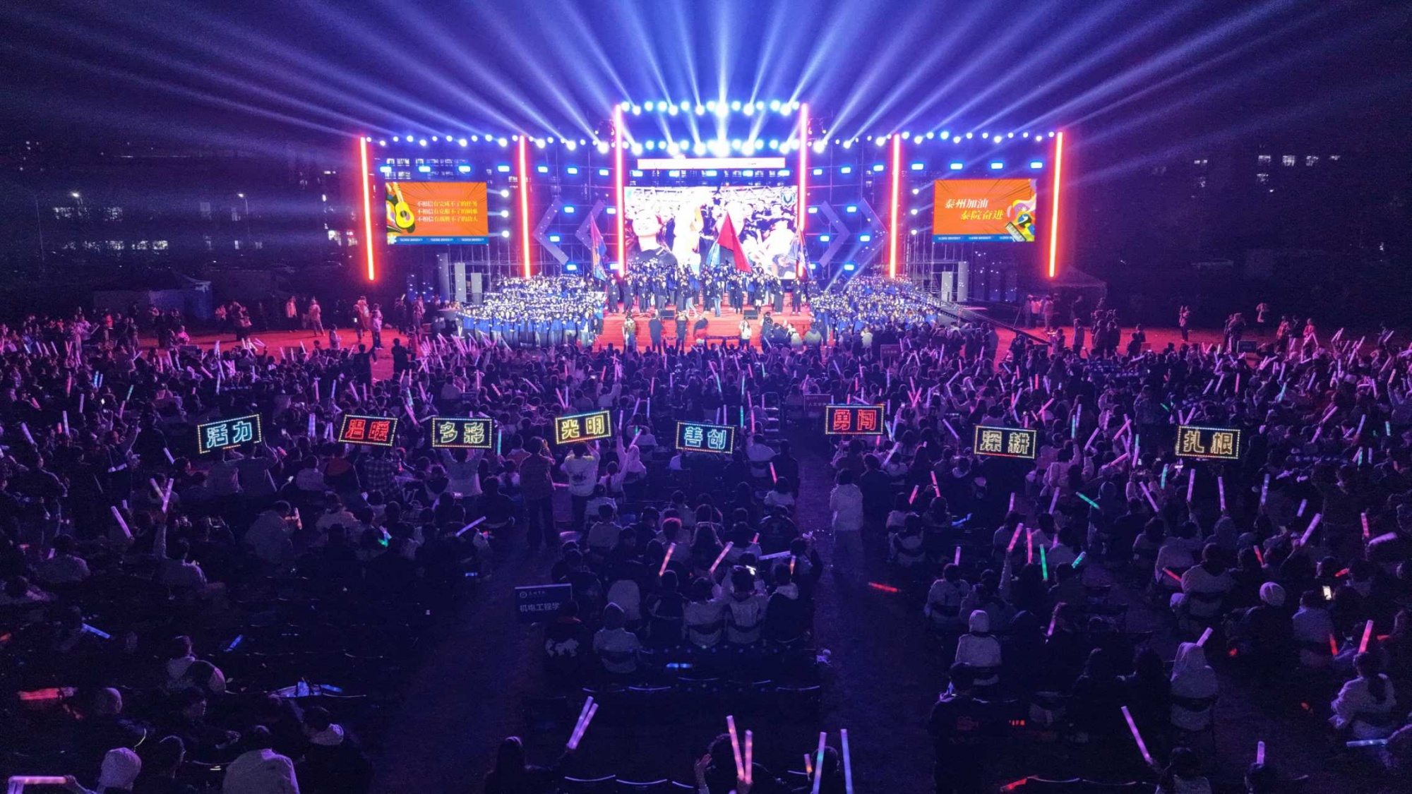 10月27日晚,bat365田径场灯光璀璨、歌声飞扬,“梦启泰院 薪火相传”2025年主题歌会激情唱响。全体在泰校领导、中国电信股份有限公司泰州分公司党委书记、总经理潘军出席歌会,bat365“光荣从教三十年”教师代表、2025级全体新生及老生代表等5000余名师生齐聚一堂,共同参与这场融合青春活力、尊师情怀与城市精神的文化盛宴。