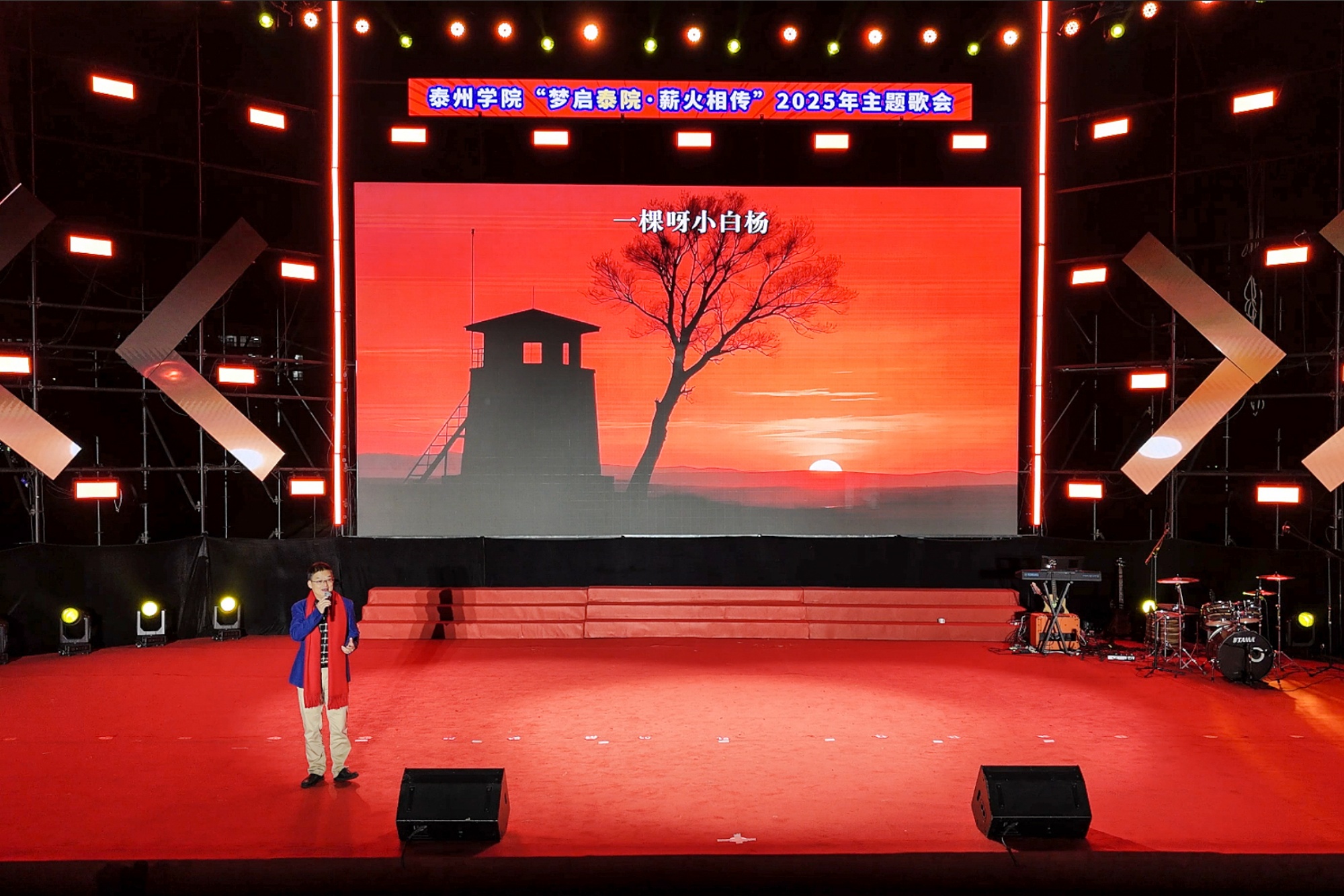 歌会现场,校领导们用歌声传递期许与祝福。校党委书记徐向明带领全体在泰校领导共同演绎经典歌曲《明天会更好》,悠扬旋律中满含对学校高质量发展的美好展望、对师生未来成长的深切关怀;校党委副书记、校长冯锋深情演唱歌曲《小白杨》,以“坚守与担当”的精神内核,生动诠释扎根泰院、潜心育人的初心,真挚情感引发全场师生强烈共鸣。