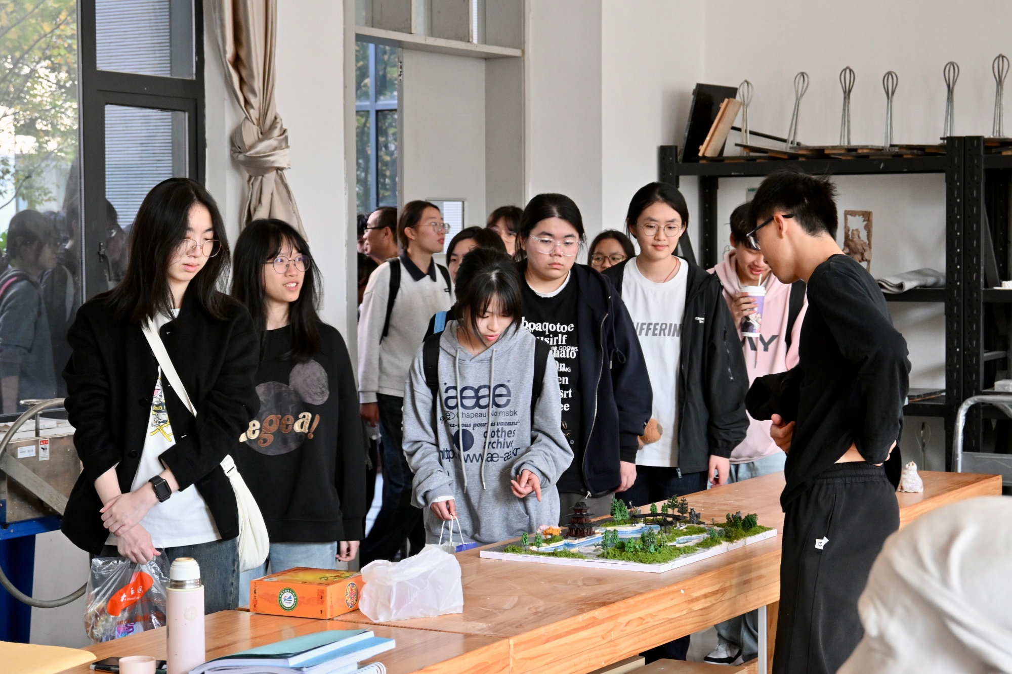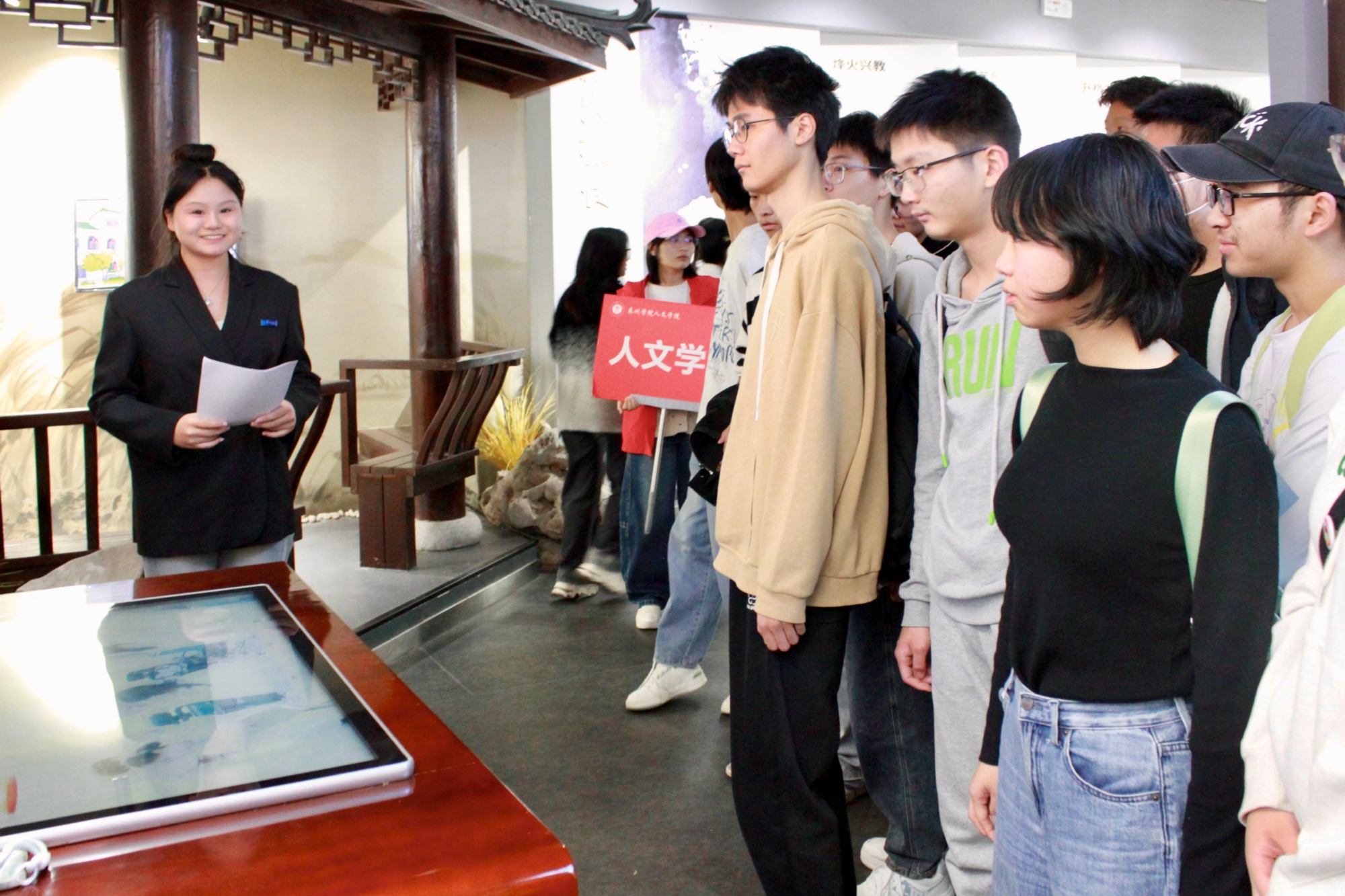 随后,来访师生在人文学院辅导员的引导下,依次参观了bat365图书馆、发展馆、教学楼及各二级学院实验实训室等场所。通过志愿者的细致讲解与现场互动,梅李高级中学的师生们对bat365教学设施、校园文化及科研平台有了更为直观和深入的了解,沉浸式体验了大学的学习氛围与校园生活。