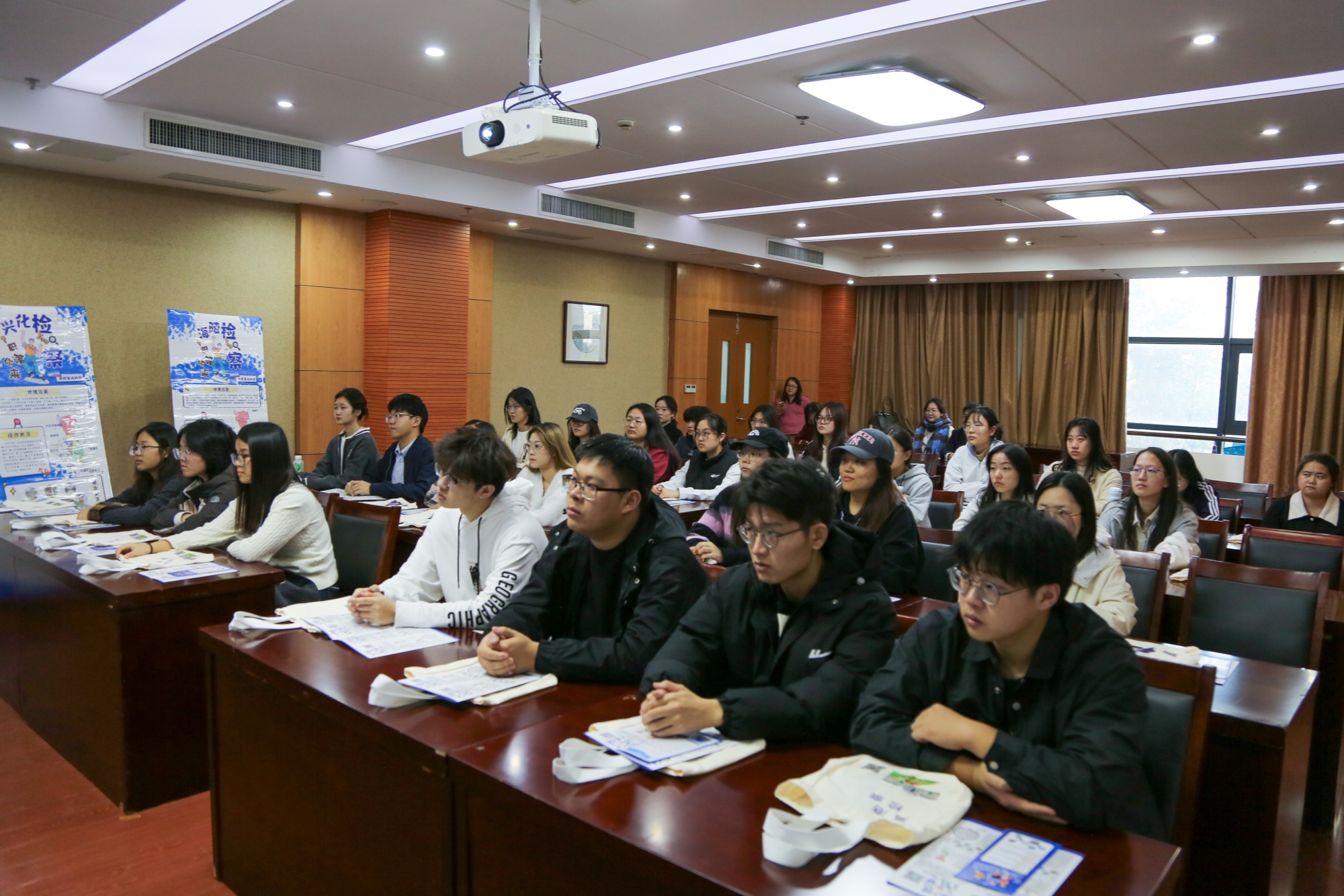 海陵区检察院政治部副主任丁旭乾详细介绍了泰州市检察院、高港区检察院和海陵区检察院的职能定位、工作环境及人才需求情况,通过播放检察工作宣传片,生动展现了检察工作的实际内容和职业价值。
