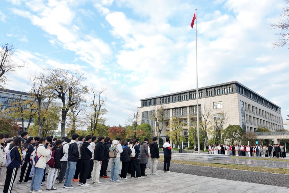 迎着初冬的晨曦,全体同学在胡瑗广场上整齐肃立,注视国旗冉冉升起。社团负责人、退役士兵冒陈程同学在国旗下回顾人民空军从战火中诞生、在奋斗中壮大的光辉历程,激励同学们都能像人民空军的将士们一样,心怀家国,勇于担当,传承“听党指挥、能打胜仗、作风优良”的军队本色,将个人理想融入强国强军事业。
