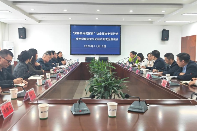 为深入贯彻落实“三融三促”校城共兴计划,拓宽毕业生就业渠道,深化产教融合,11月13日,校党委副书记徐庆国率队赴兴化市经济开发区管委会及区内重点企业,开展访企拓岗专项调研活动。兴化市委统战部副部长、市侨联主席王颉,开发区临城街道统战委员汪蓉及多家骨干企业代表出席座谈。教育科学学院、外国语学院相关负责人、专业教师及学生代表共同参与。
