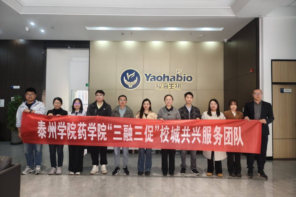 为进一步推动“三融三促”校城共兴计划,精准对接行业需求、提高人才培养质量、大力推进学生就业工作,11月13日,药学院党总支书记、院长牟伊,副院长阚玉峰率学院青年博士教师团队,赴江苏耀海生物制药有限公司开展专题调研。