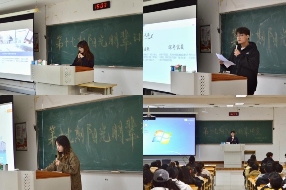 为充分发挥“一站式”学生社区的育人功能,11月13日,学生工作处在“一站式”学生社区开展阳光朋辈讲堂。讲堂以“以赛促学,以学强赛”为主题,邀请四位在学术竞赛中表现优异的“阳光学子”分享参赛心得,积极发挥优秀学生的示范引领作用。