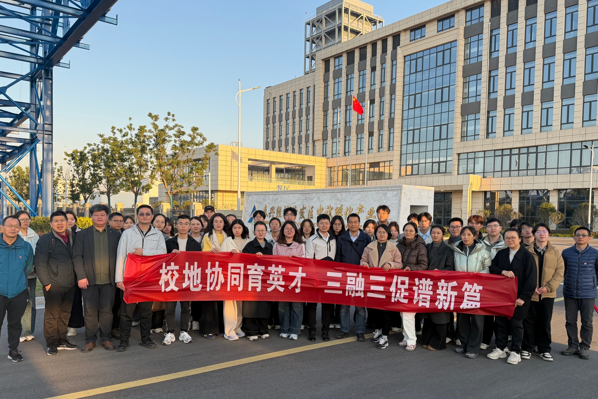 为深化“三融三促”校地共建机制,推动产教融合从“浅层对接”向“深度融合”迈进,11月19日下午,化学化工与材料工程学院党总支书记、院长朱诚带领学院骨干教师及首届“润泰班”学员,赴泰兴经济开发区开展“行企第一课”,沉浸式开展学习活动,探索校地企协同育人新模式。