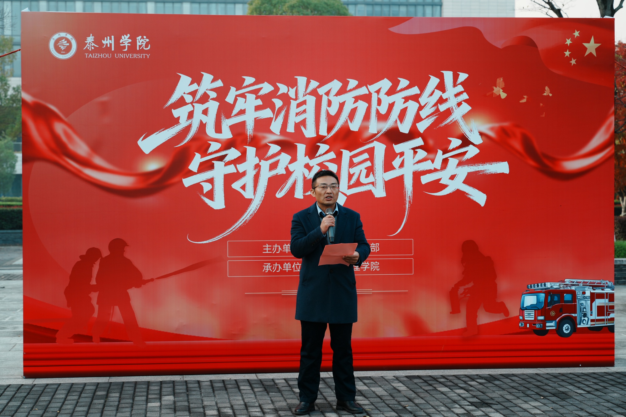 为强化师生消防安全意识,筑牢消防防线,11月24日上午,由校党委学生工作部主办、经济与管理学院承办的“筑牢消防防线 守护校园平安”主题升旗仪式在胡瑗广场举行。经济与管理学院党总支书记陈根怀、党总支副书记王硕以及130名师生参加仪式。