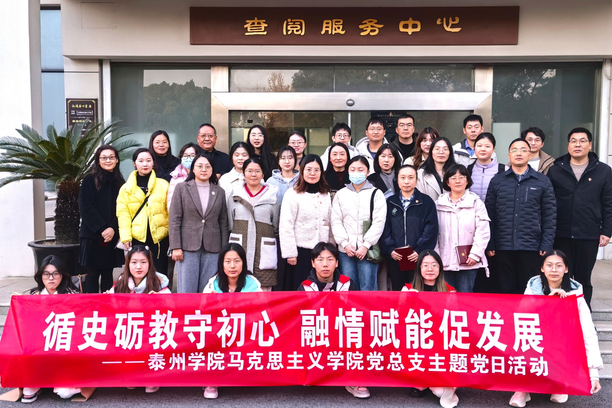 为深化地方历史文化与思政课教学的融合,筑牢党员教师育人初心,11月26日下午,马克思主义学院党总支组织全体党员及所属社团学生骨干,赴泰州市党史方志办公室(市档案馆)开展“循史砺教守初心融情赋能促发展”主题党日活动。泰州市党史方志办公室副主任吉森及相关处室负责人应邀参与活动。