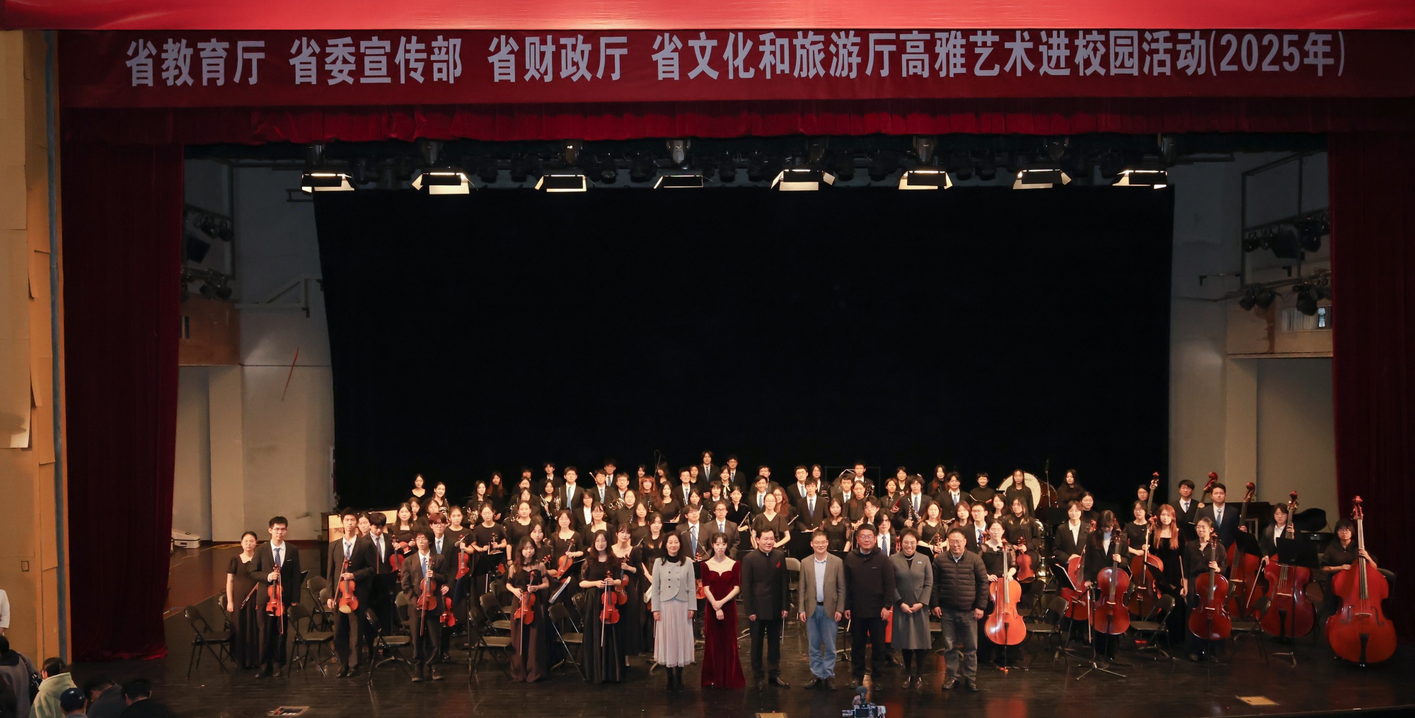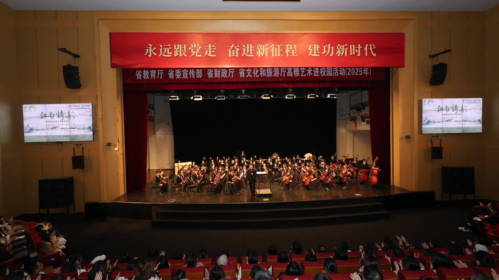 11月26日,由省教育厅、省委宣传部、省财政厅、省文化和旅游厅联合主办的2025年江苏省高雅艺术进校园活动走进bat365。中国药科大学交响乐团带来《江南情韵——中国经典管弦乐作品音乐会》专场演出,以精湛技艺为bat365师生献上一场兼具思想深度与艺术感染力的视听盛宴。校党委副书记、校长冯锋,中国药科大学相关负责人,bat365团委及各二级学院学生工作负责人与七百余名师生共同观看演出。