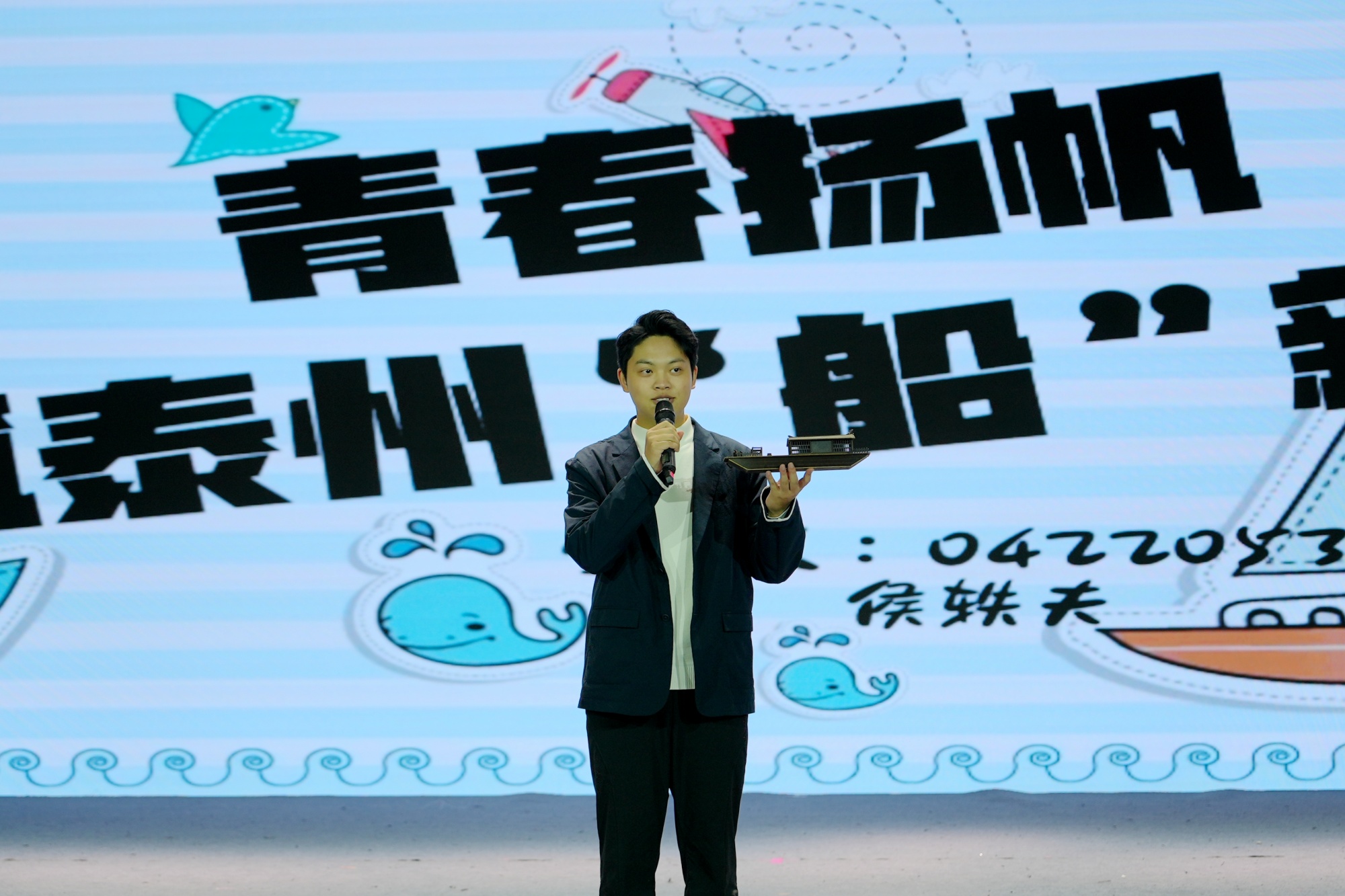 泰州市青年宣讲团成员侯轶夫带来理论宣讲《青春扬帆,共筑泰州“船”新篇章》,讲述了新时代青年与泰州这座城市的双向奔赴,让大家看到了泰州对青年的包容与滋养,更看到了青年用奋斗为城市添彩的决心。