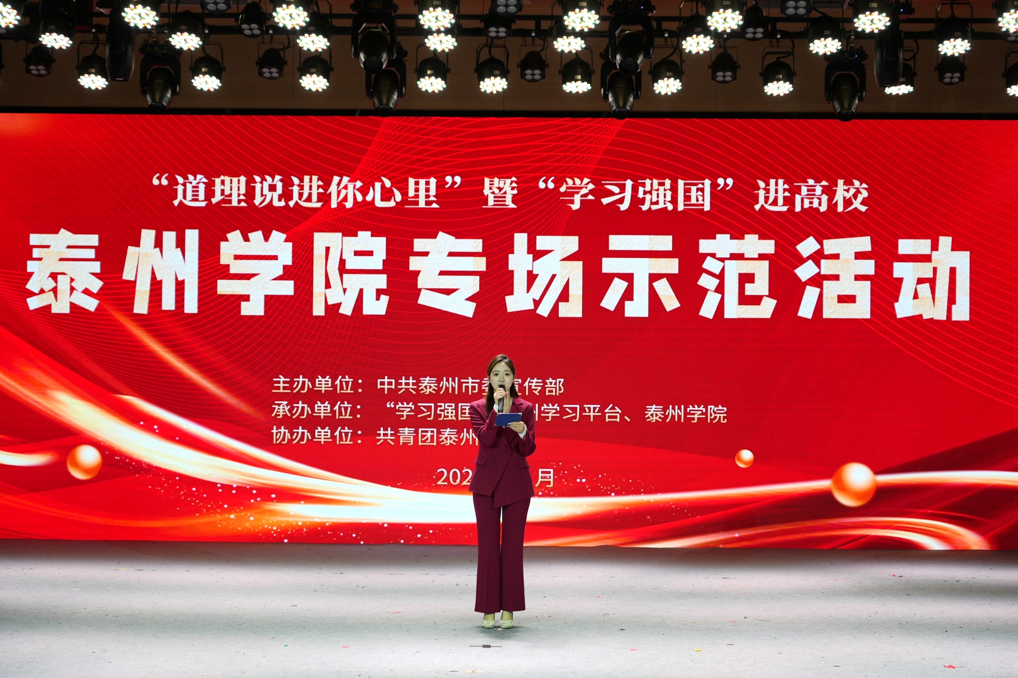 11月27日下午,“道理说进你心里”暨“学习强国”进高校bat365在线中国官网登录入口专场示范活动在bat365成功举办,活动由中共泰州市委宣传部主办,“学习强国”泰州学习平台、bat365在线中国官网登录入口承办,共青团泰州市委协办。校党委宣传部、校团委负责人等近200名师生参加活动。